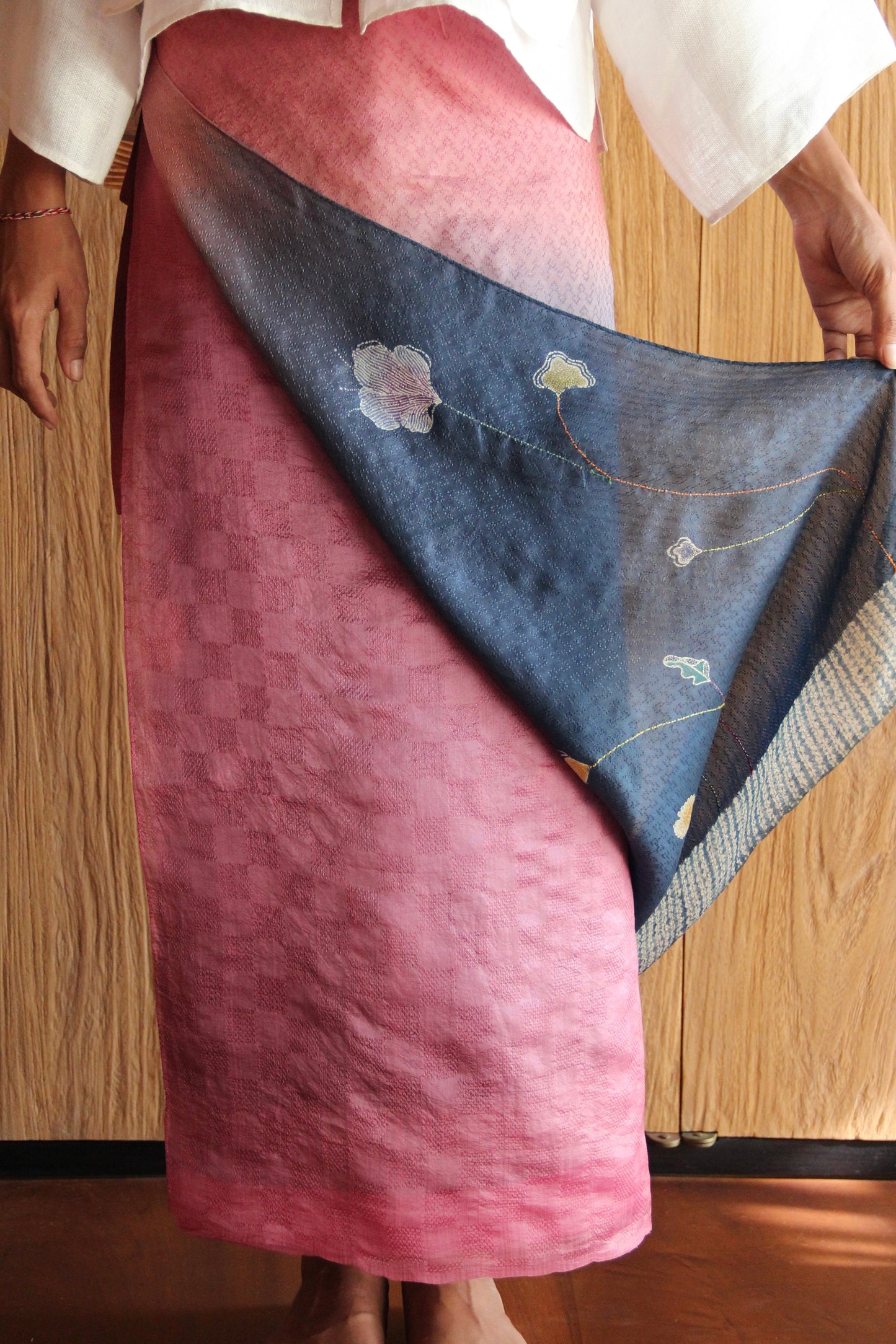 Hand wash gently in cold water with mild soap. After rinsing, let the garment breathe in the shade—keep it away from harsh sunlight, which may fade its natural beauty. In the beginning, wash separately, as the colors may softly run, like a memory letting go.