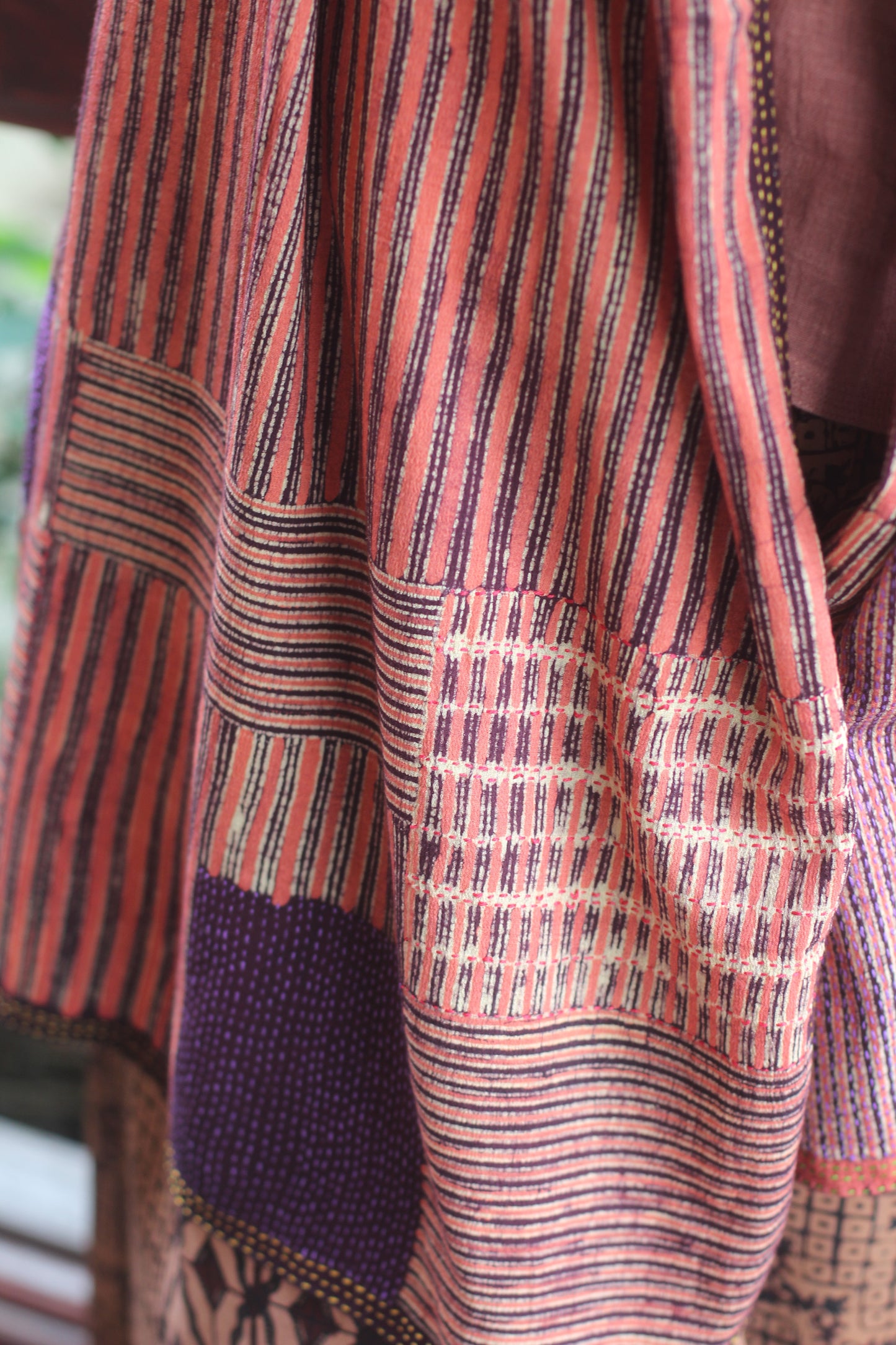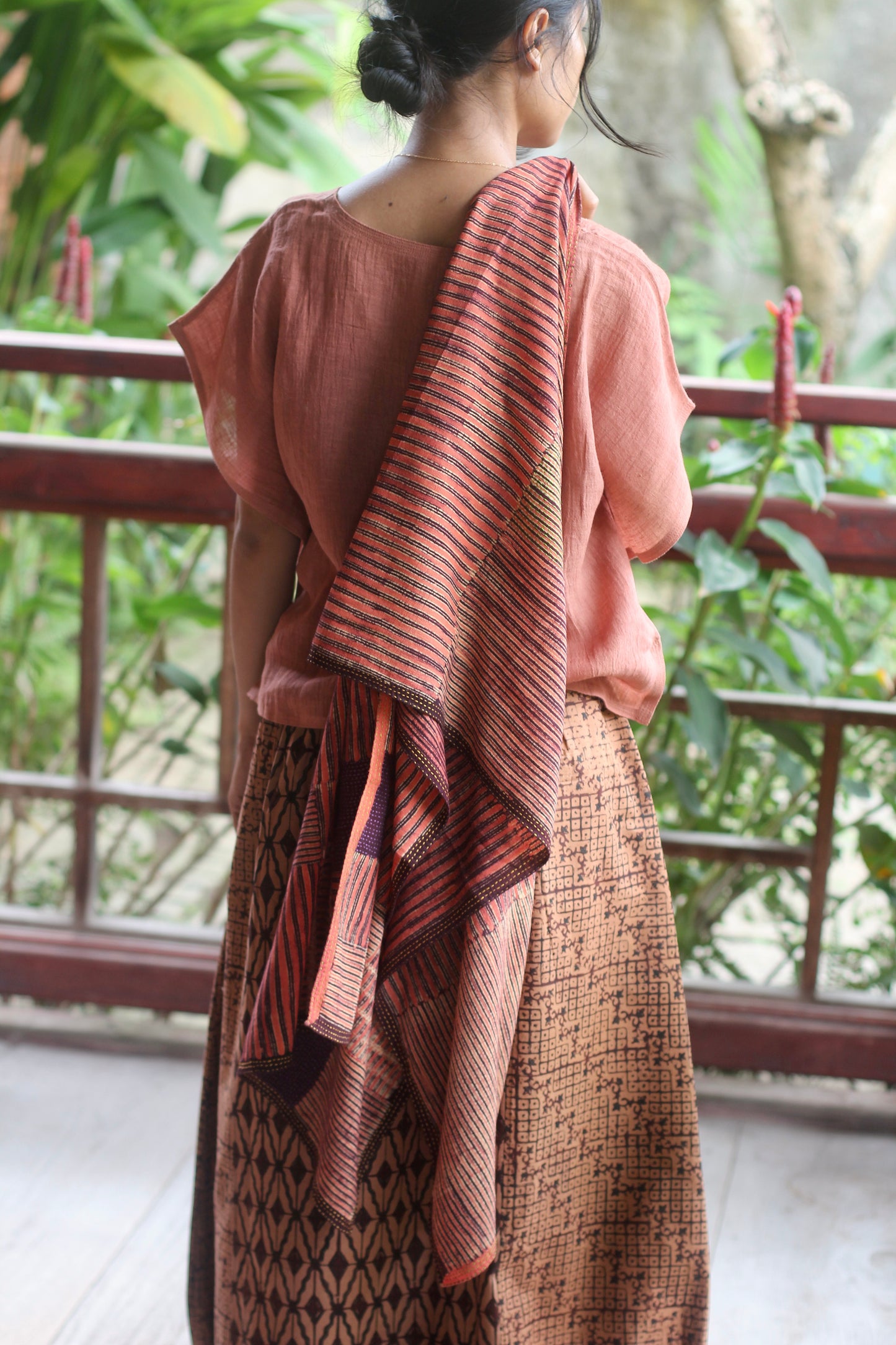 Hand wash gently in cold water with mild soap. After rinsing, let the garment breathe in the shade—keep it away from harsh sunlight, which may fade its natural beauty. In the beginning, wash separately, as the colors may softly run, like a memory letting go.