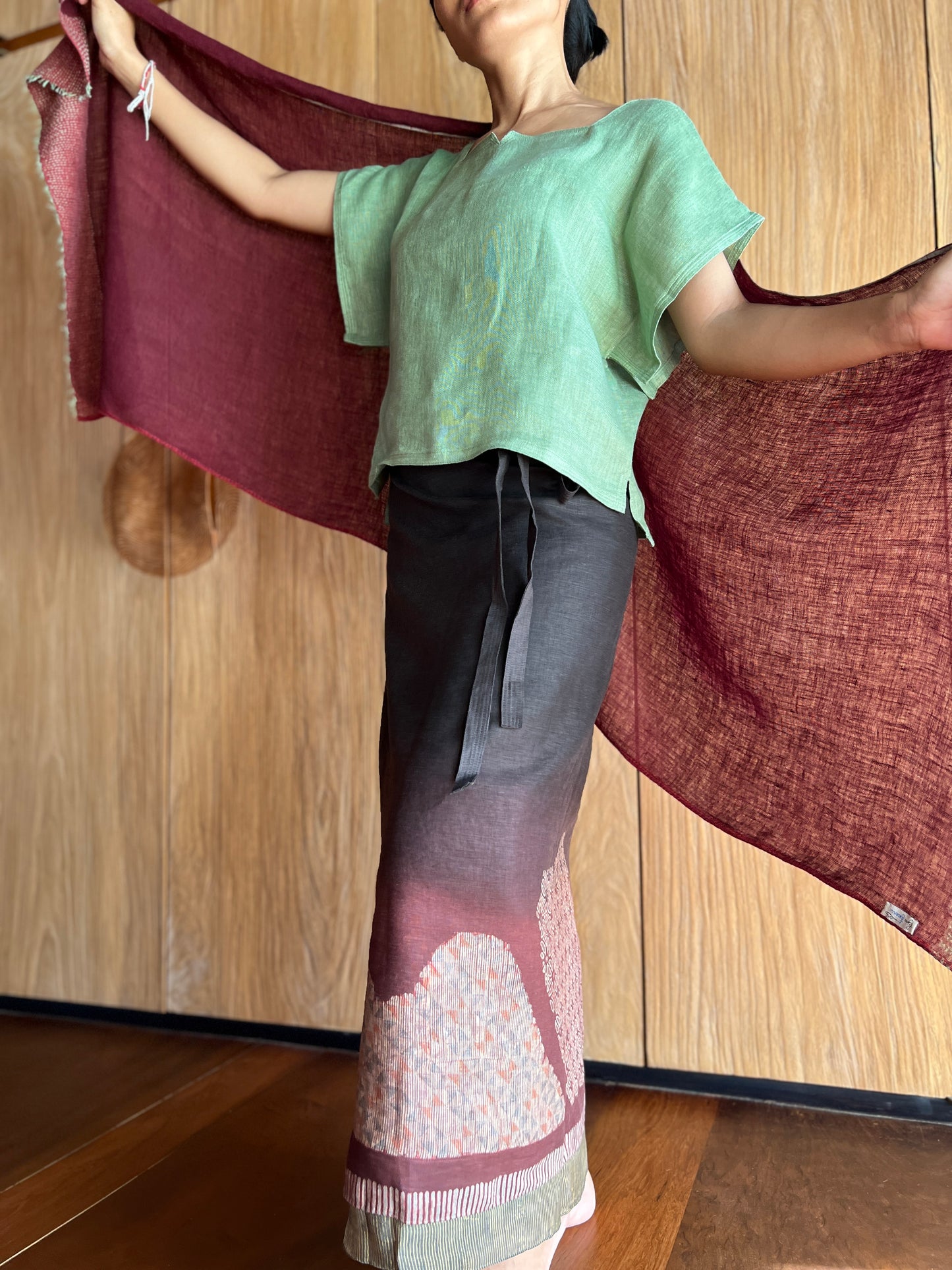 Poinsettia Sulam Linen Scarf