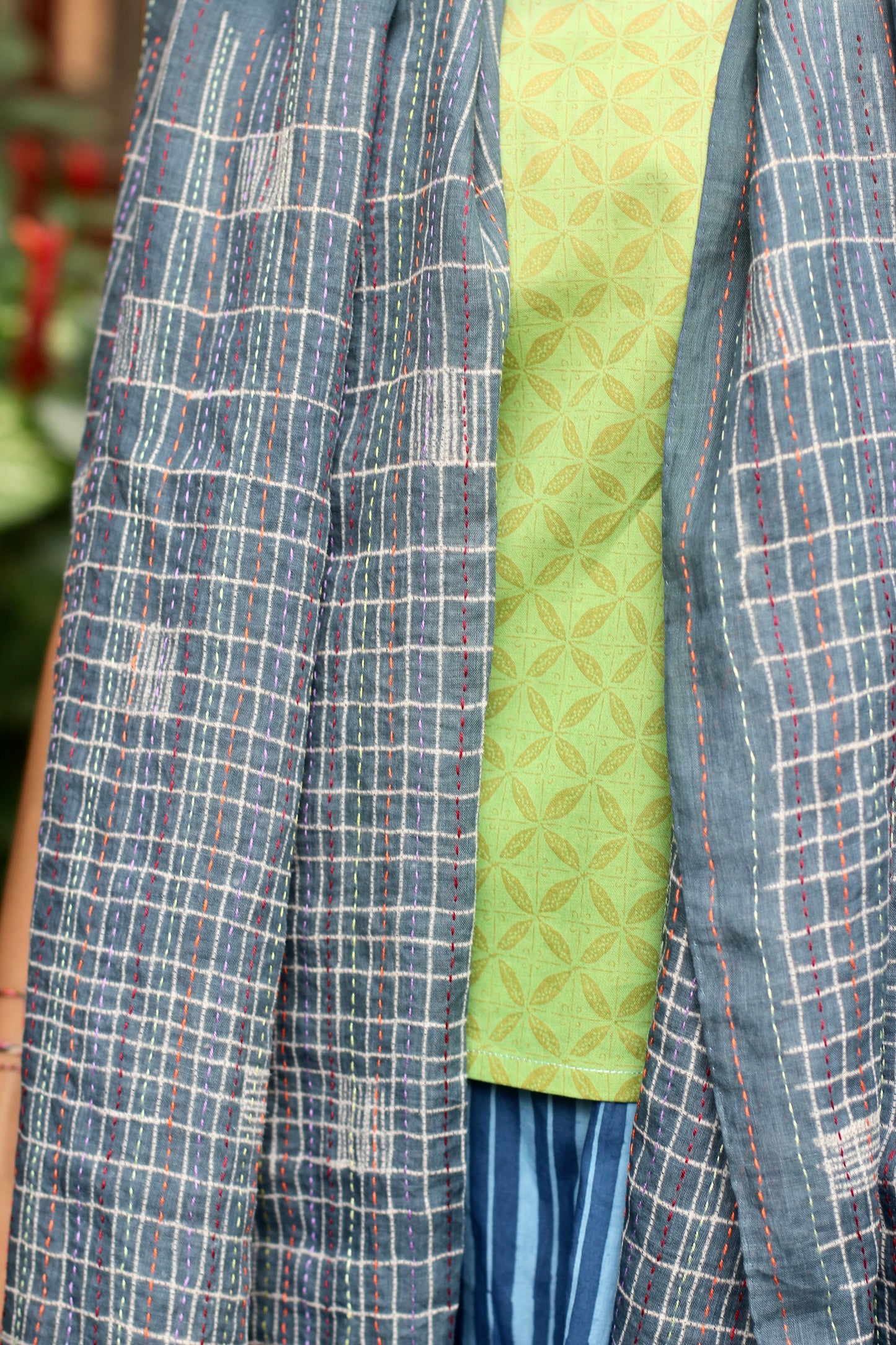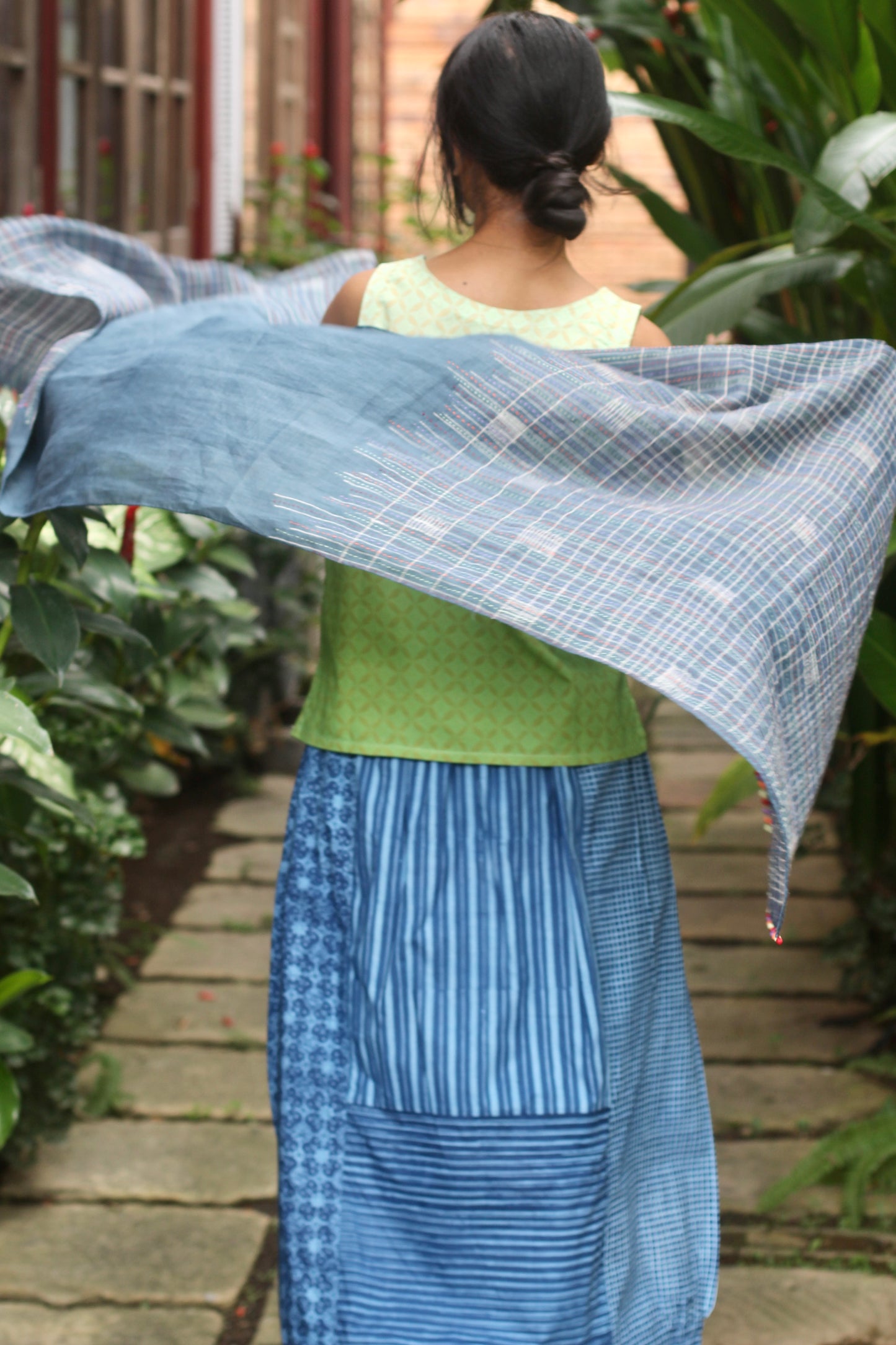 Hand wash gently in cold water with mild soap. After rinsing, let the garment breathe in the shade—keep it away from harsh sunlight, which may fade its natural beauty. In the beginning, wash separately, as the colors may softly run, like a memory letting go.