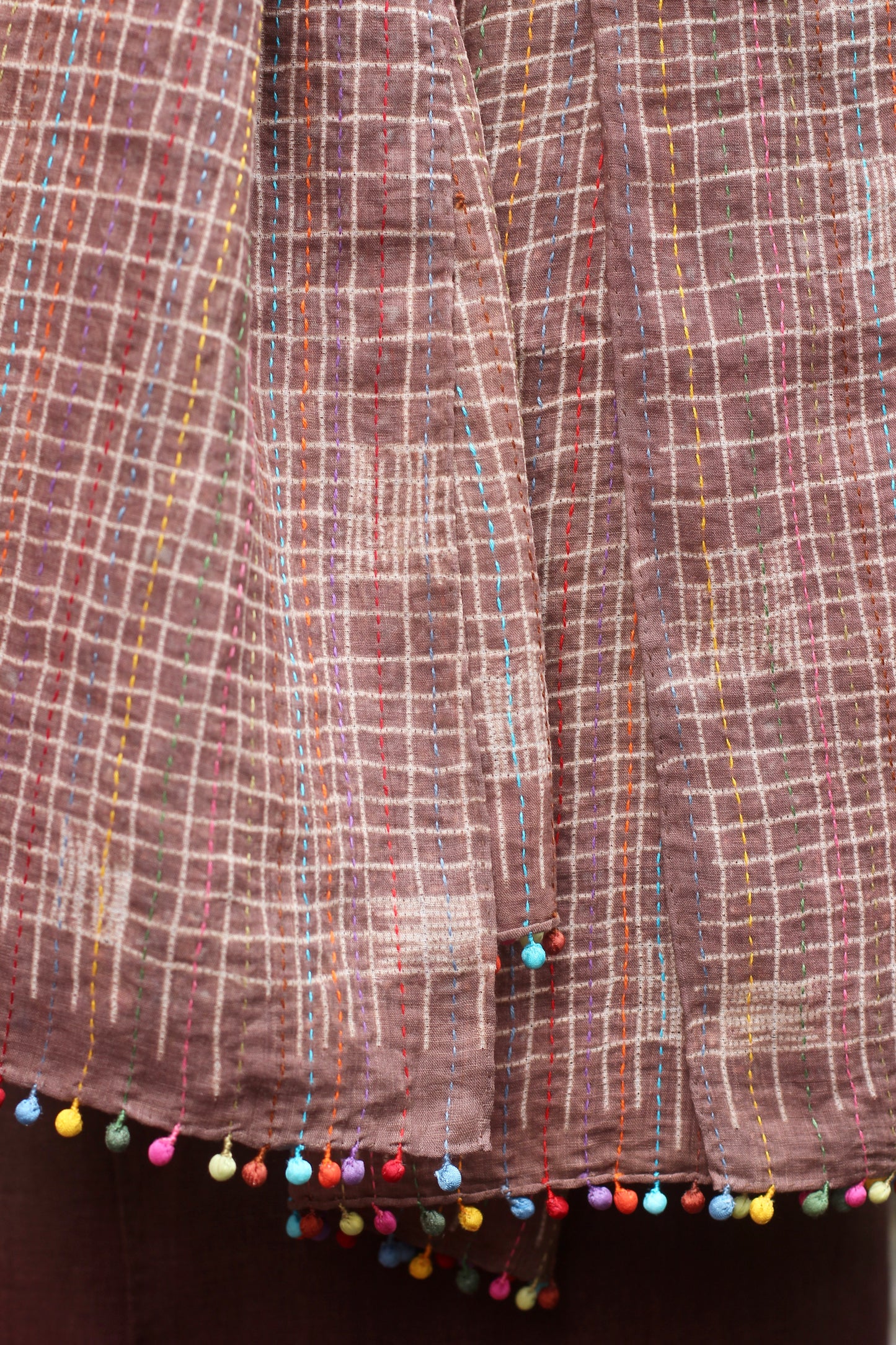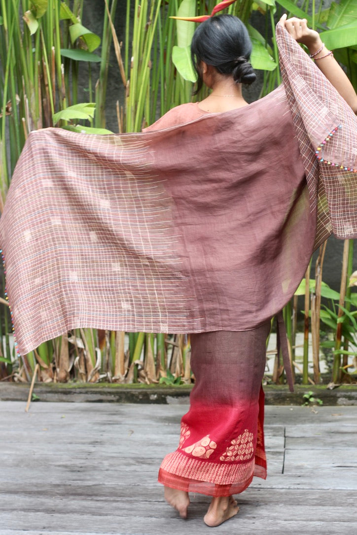 Hand wash gently in cold water with mild soap. After rinsing, let the garment breathe in the shade—keep it away from harsh sunlight, which may fade its natural beauty. In the beginning, wash separately, as the colors may softly run, like a memory letting go.