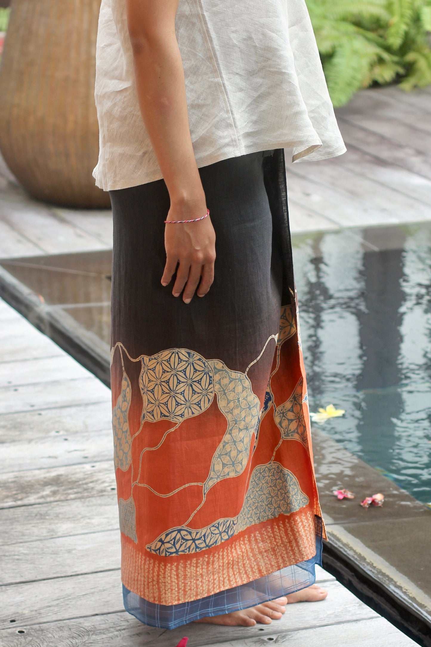 Wrap skirt with strings.