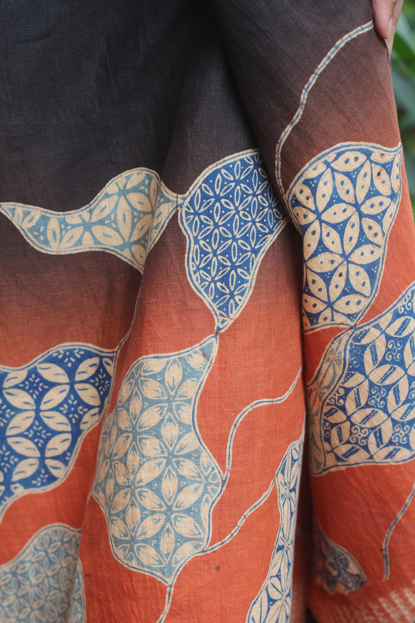 Hand wash gently in cold water with mild soap. After rinsing, let the garment breathe in the shade—keep it away from harsh sunlight, which may fade its natural beauty. In the beginning, wash separately, as the colors may softly run, like a memory letting go.