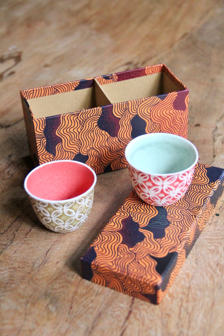 Birubeeru's ceramics are handmade, unique, never-the-same creations. Pieces from a collection share the same intention but have their own singularities in shape, Batik pattern and colour.