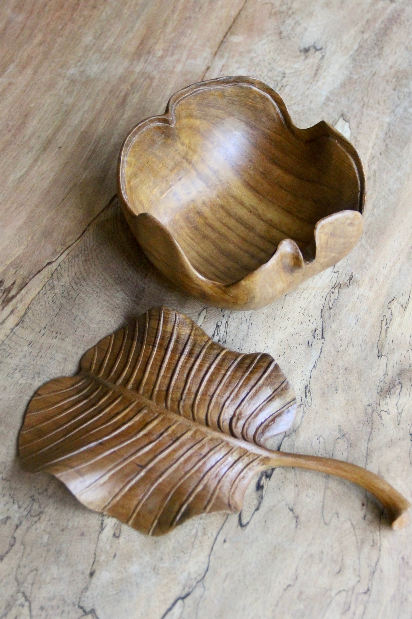 Biru Beeru’s wooden tableware is coated in natural shellac, a finish that may soften with time and use. To bring back its gentle shine, simply rub the surface with a soft cloth and a touch of olive oil, coconut oil, or candlenut oil. Rinse with care and dry right away. Like all things shaped by hand, it does not like to be soaked—keep it dry, and it will age with grace.