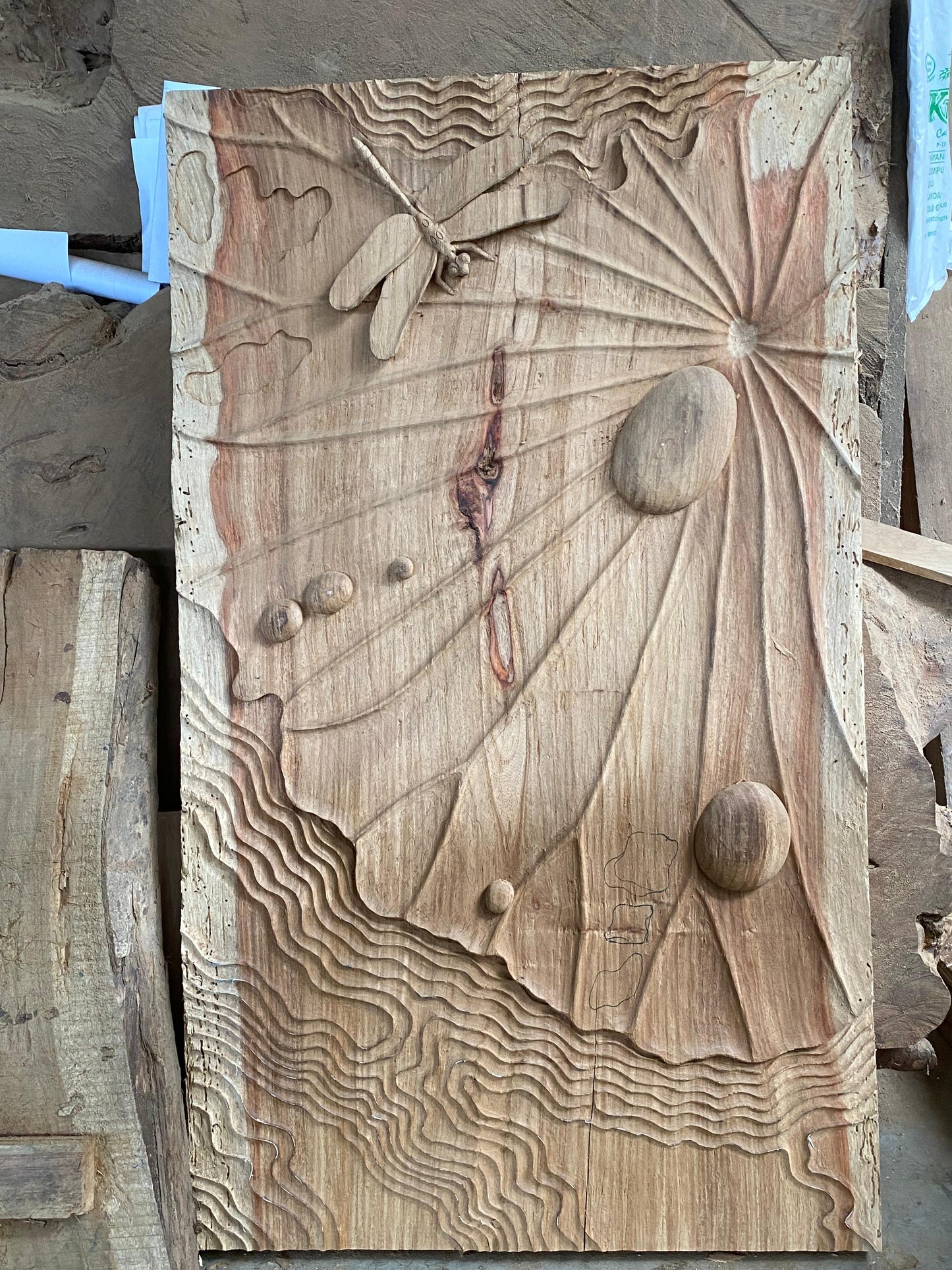 Another signature of Beeru Beeru Interiors is our woodcraft — decorative wooden elements carved entirely by hand. Each piece is usually crafted from a single wooden panel. Even the most intricate details, such as branches and leaves, are never joined from separate pieces of wood. Everything is carved from one solid block, making each work both technically challenging and truly special.