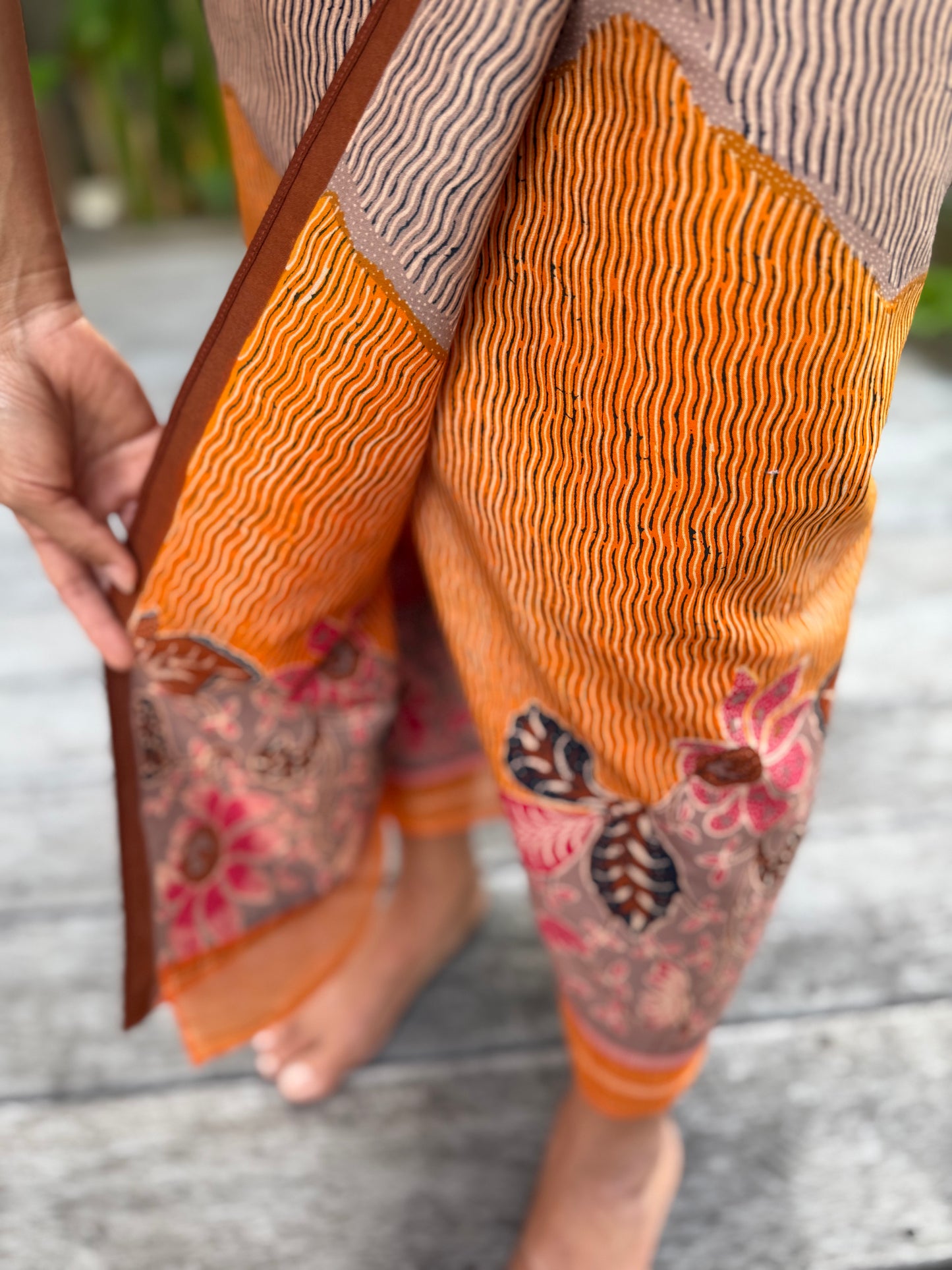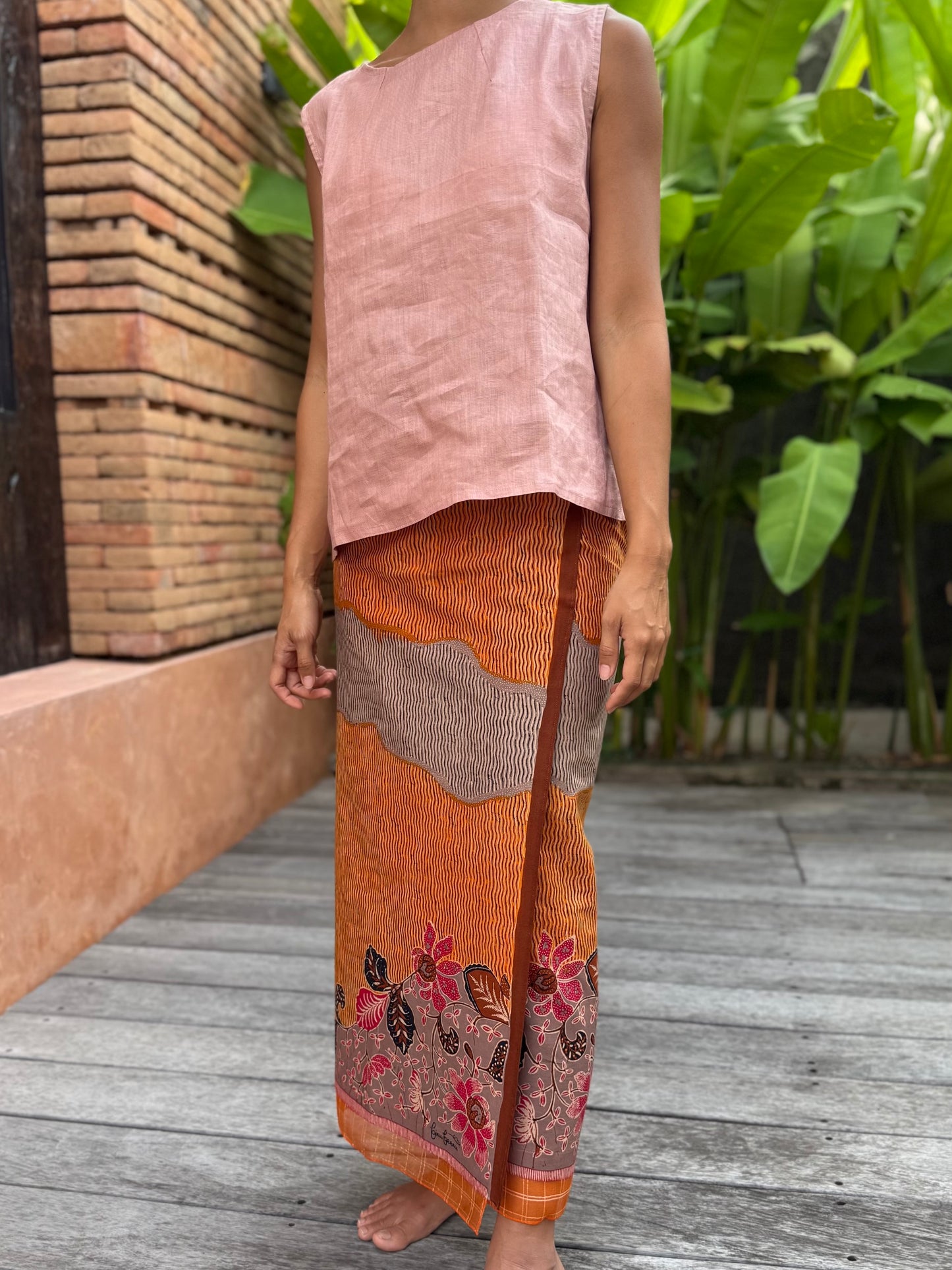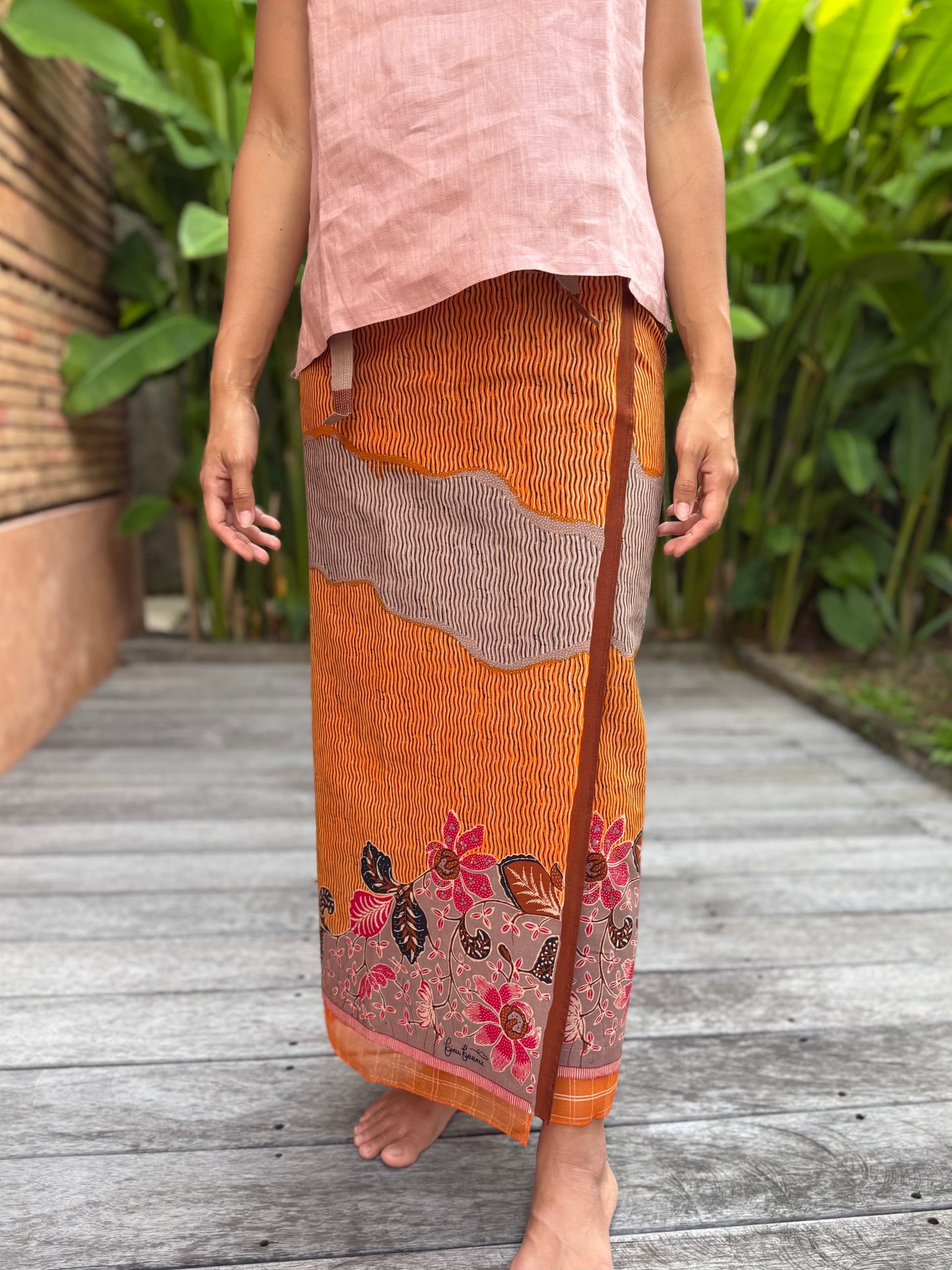 Sarung rok lilit katun dengan tali.