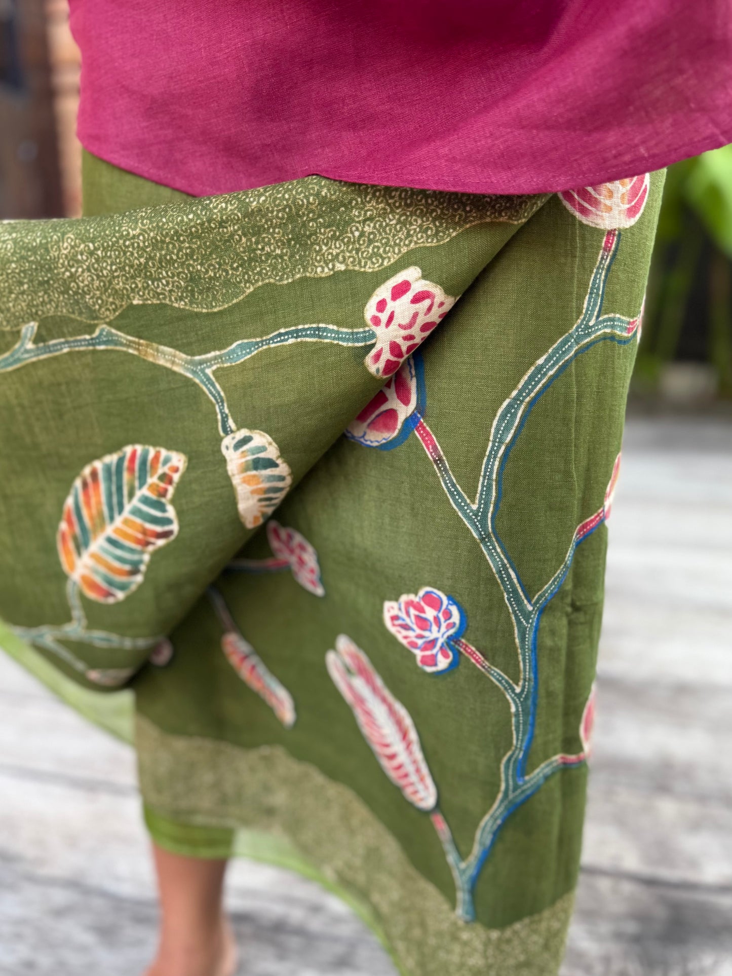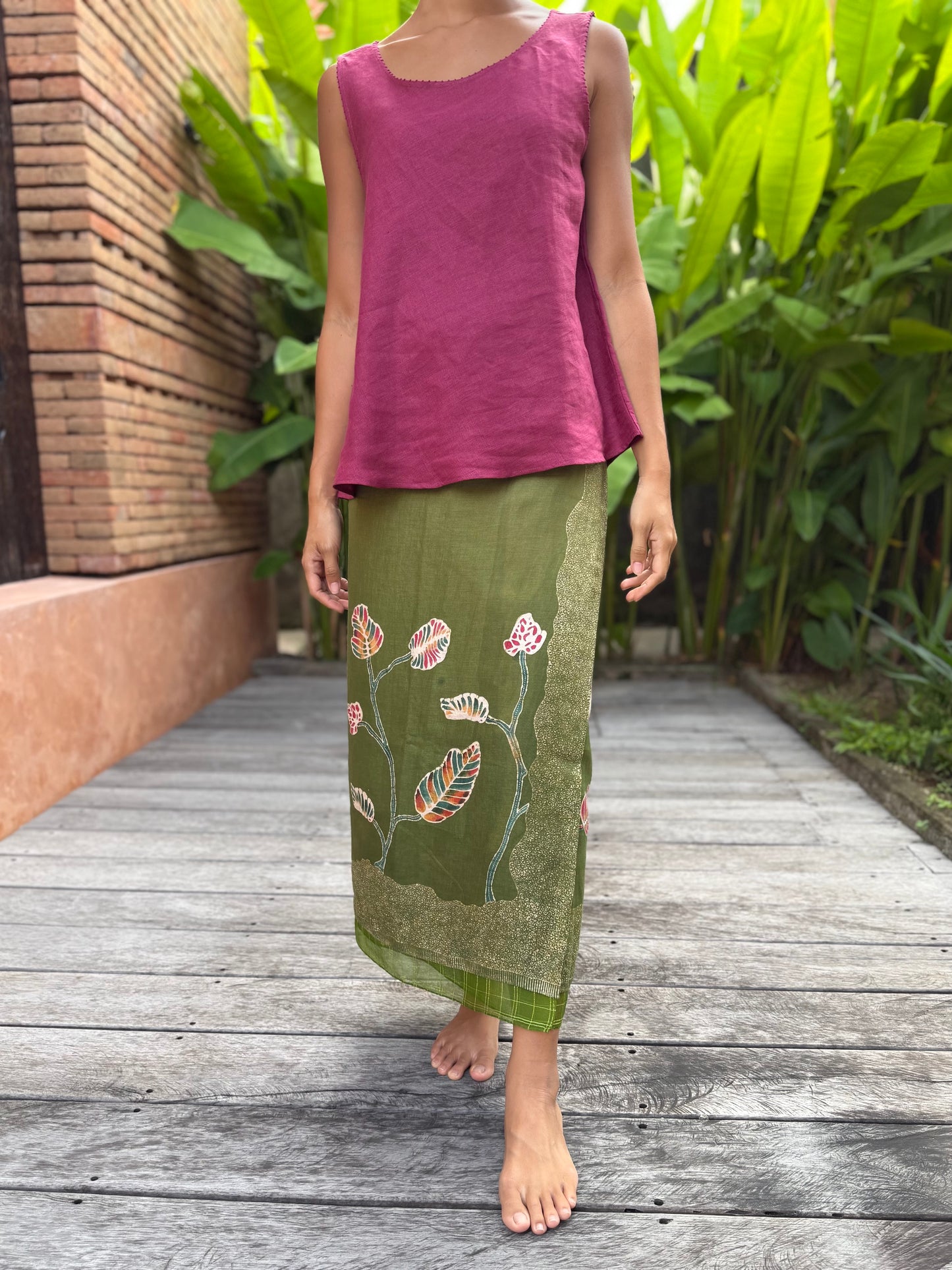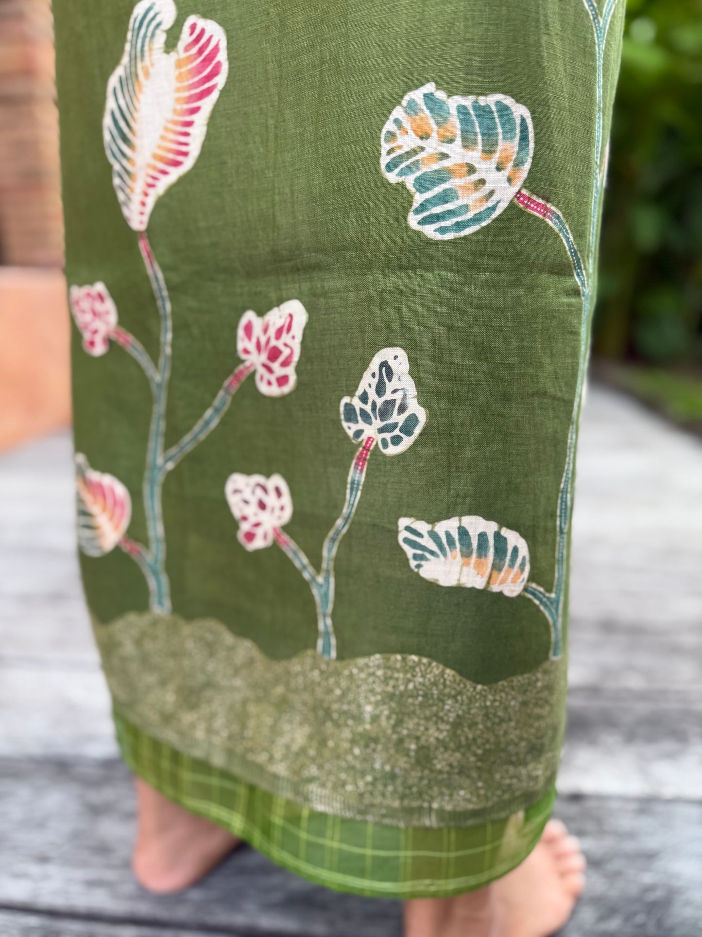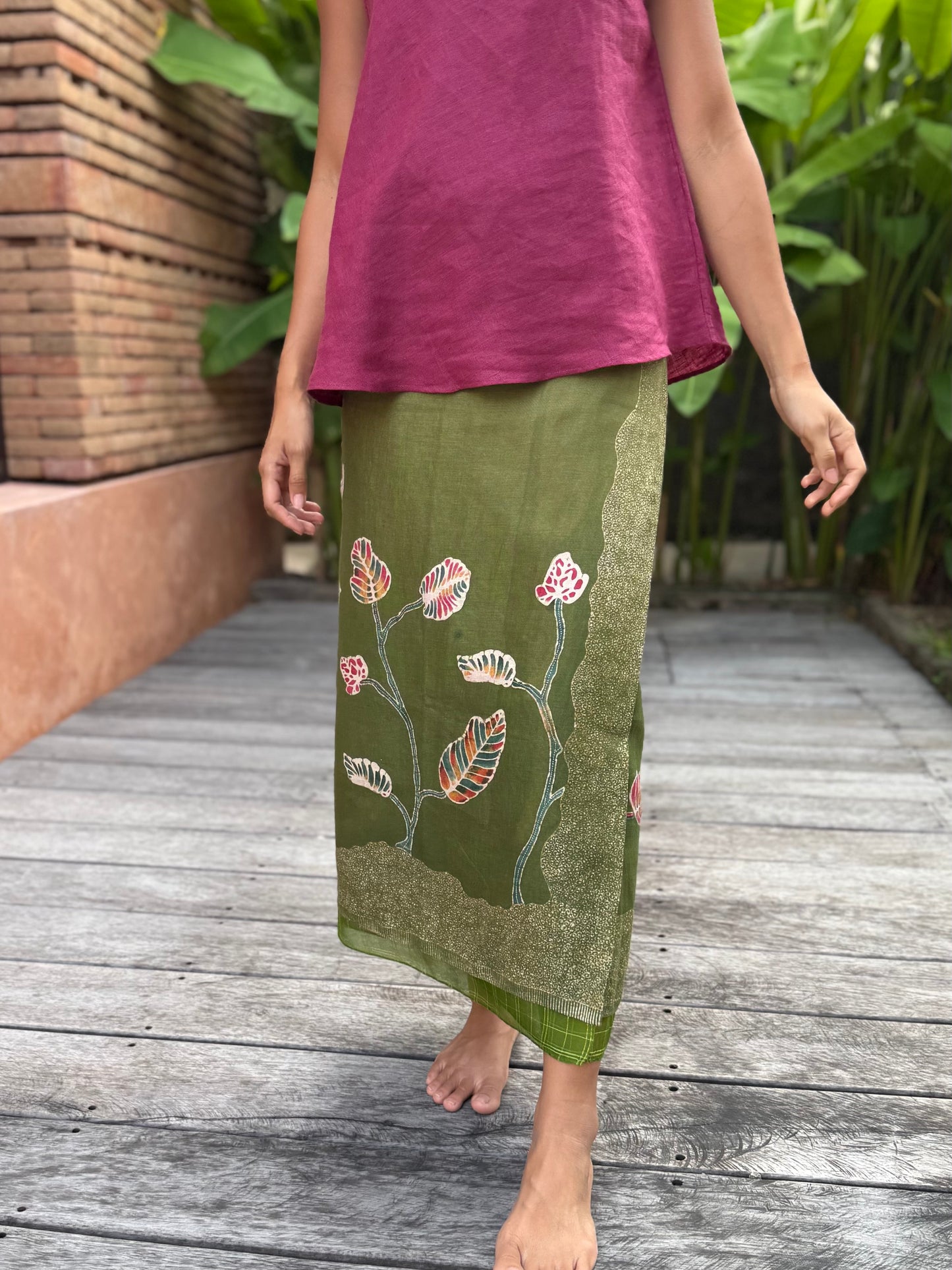 Daun Jati Linen Sarung Ikat (Green)