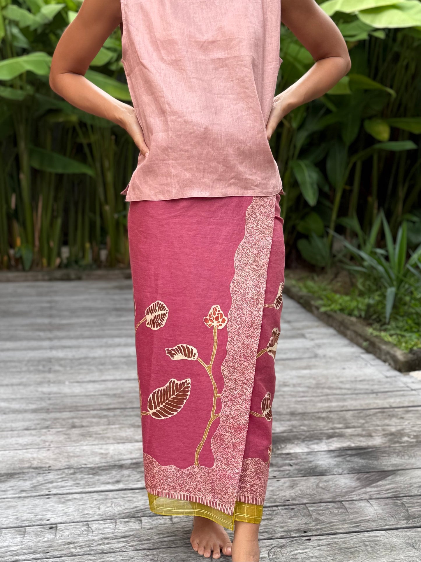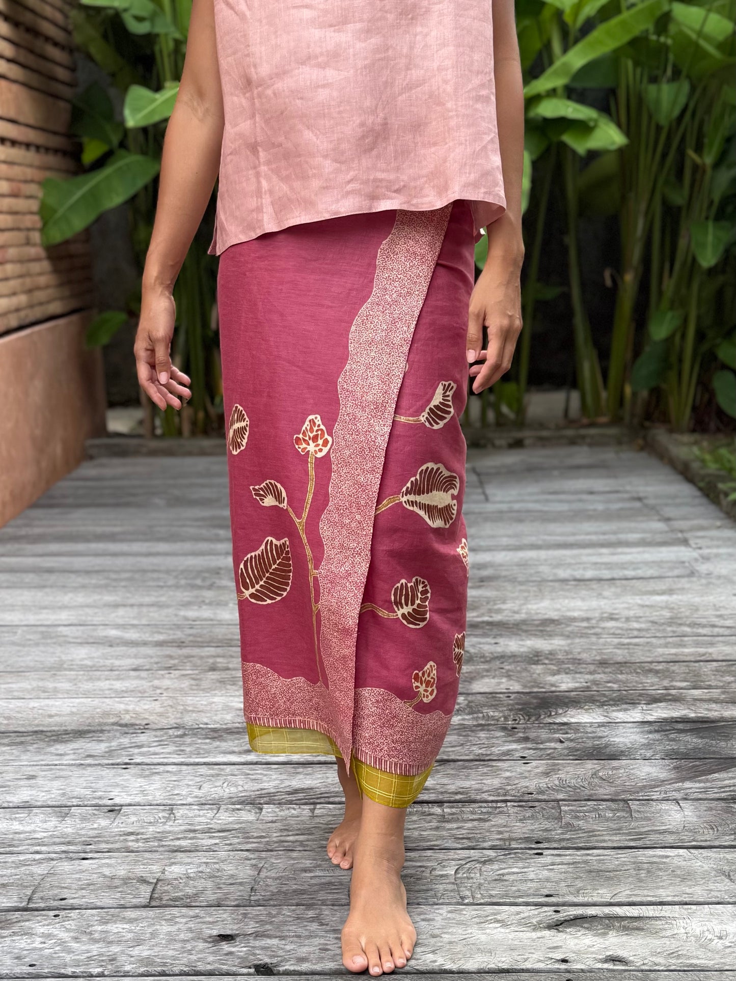 Sarung rok lilit dengan tali.