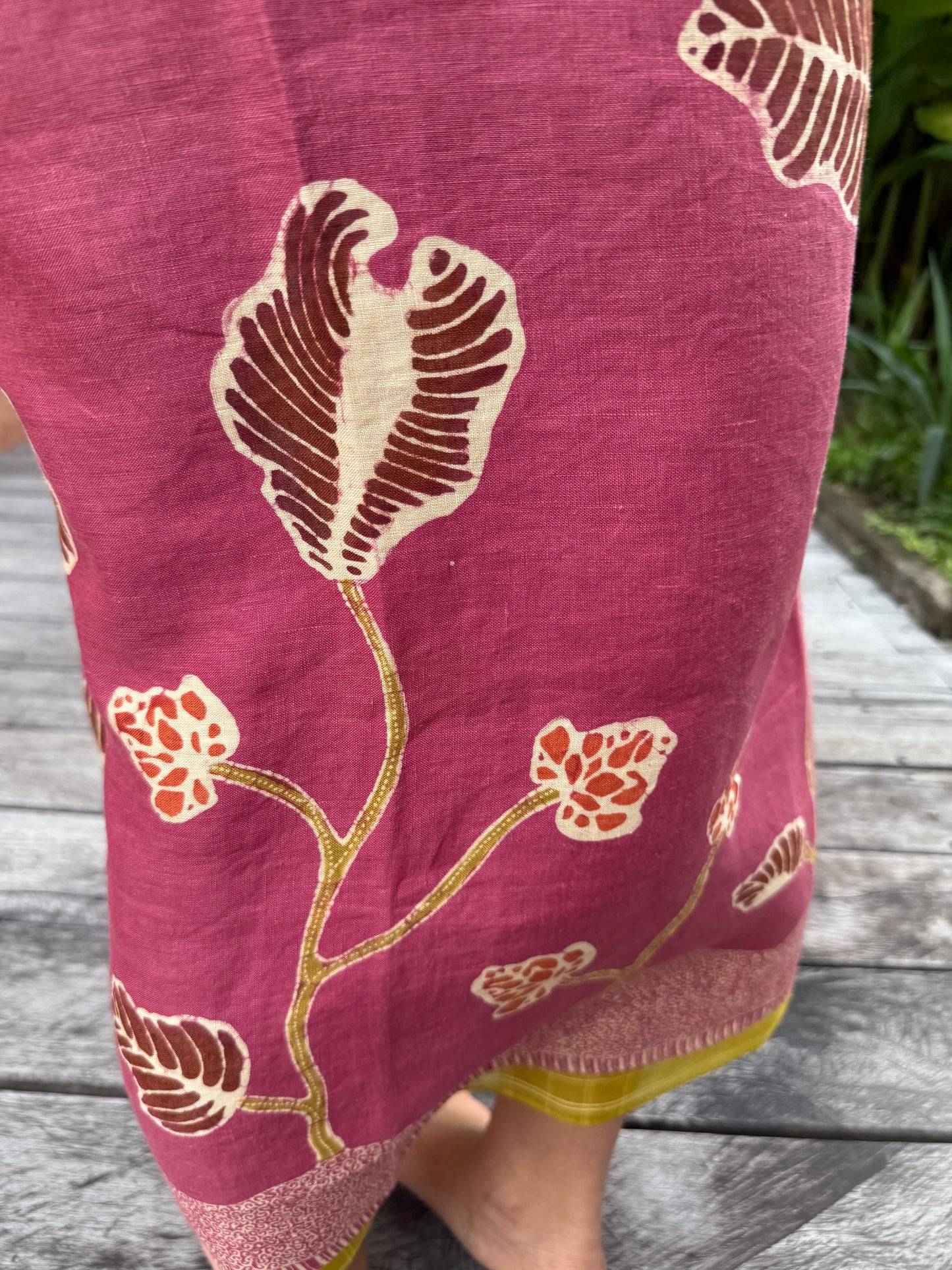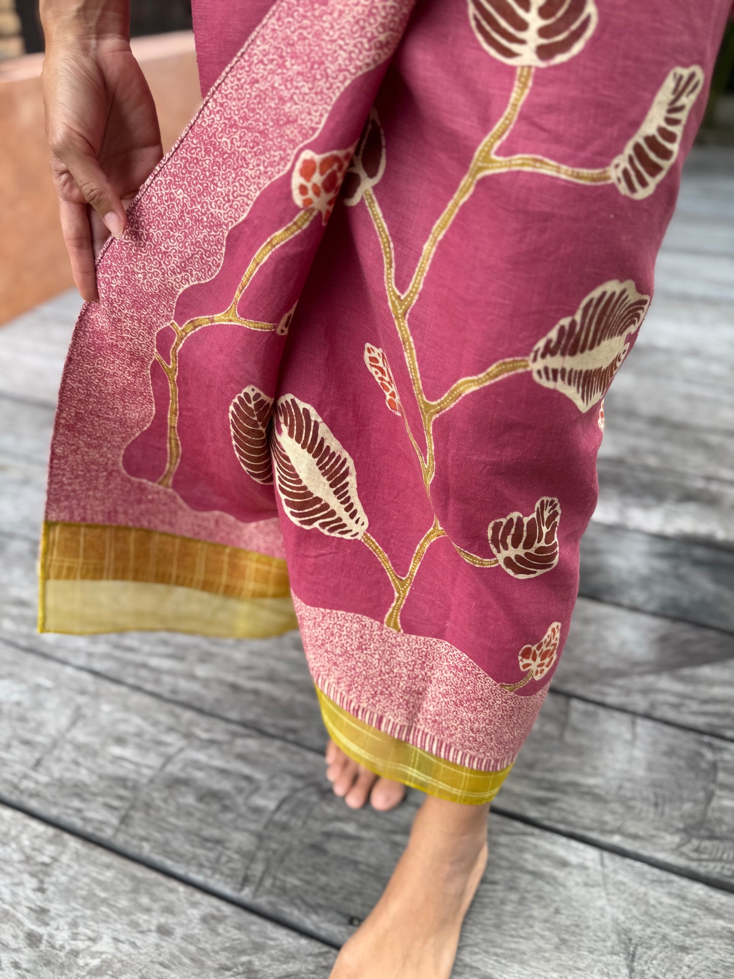 Hand wash gently in cold water with mild soap. After rinsing, let the garment breathe in the shade—keep it away from harsh sunlight, which may fade its natural beauty. In the beginning, wash separately, as the colors may softly run, like a memory letting go.