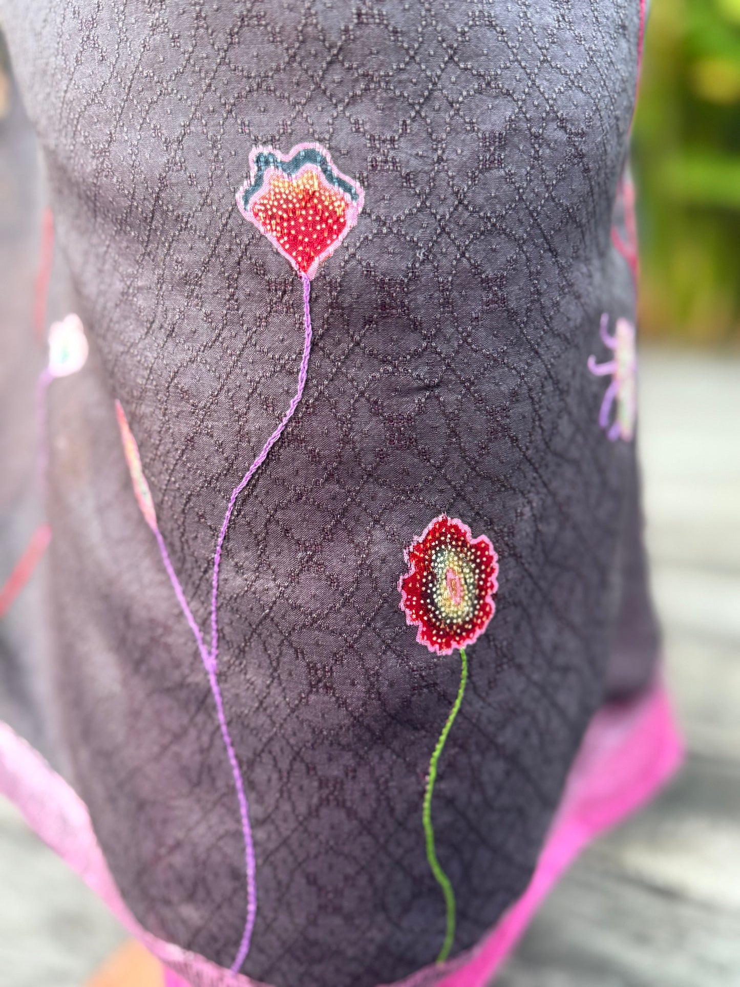 Hand wash gently in cold water with mild soap. After rinsing, let the garment breathe in the shade—keep it away from harsh sunlight, which may fade its natural beauty. In the beginning, wash separately, as the colors may softly run, like a memory letting go.