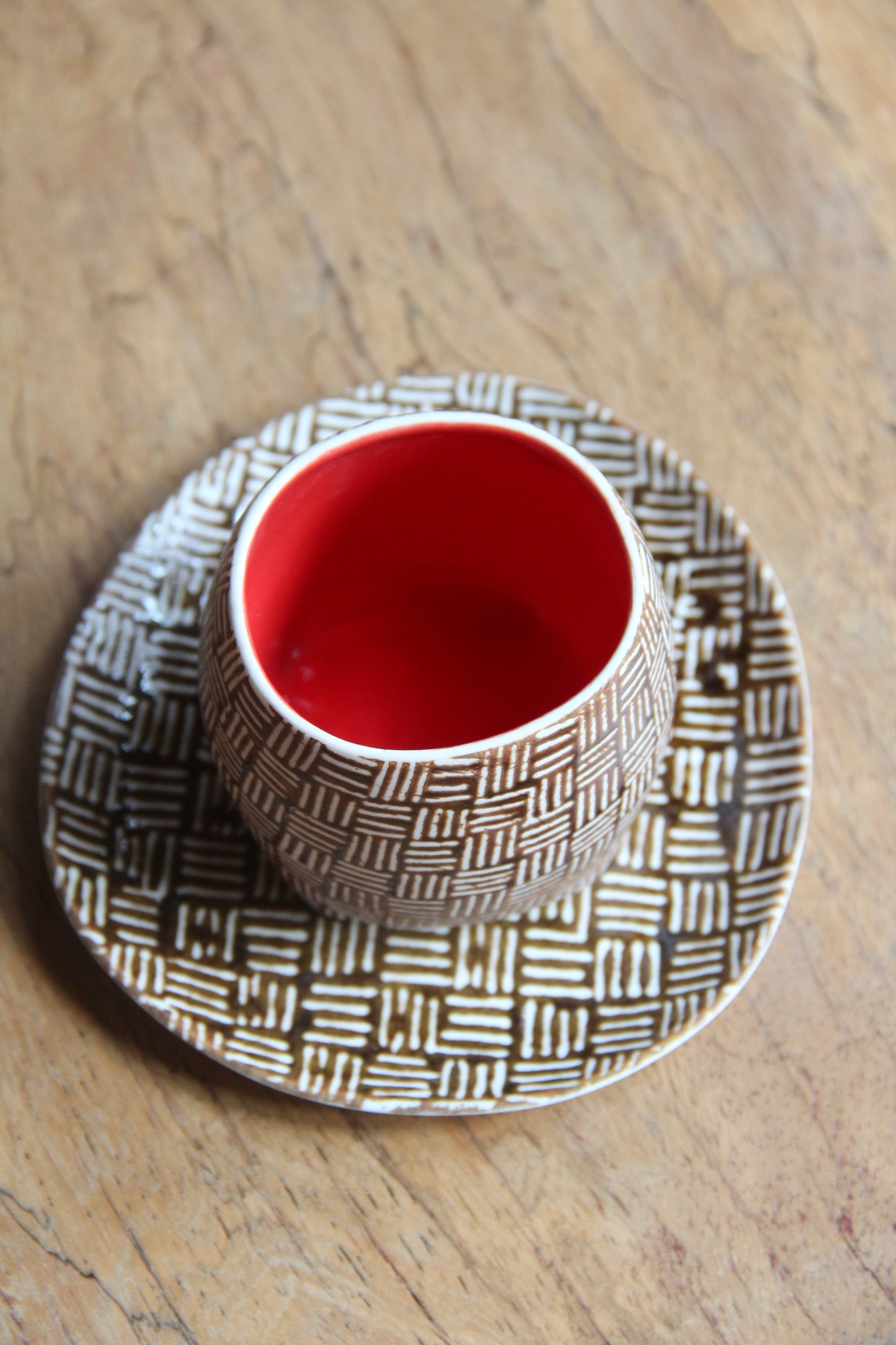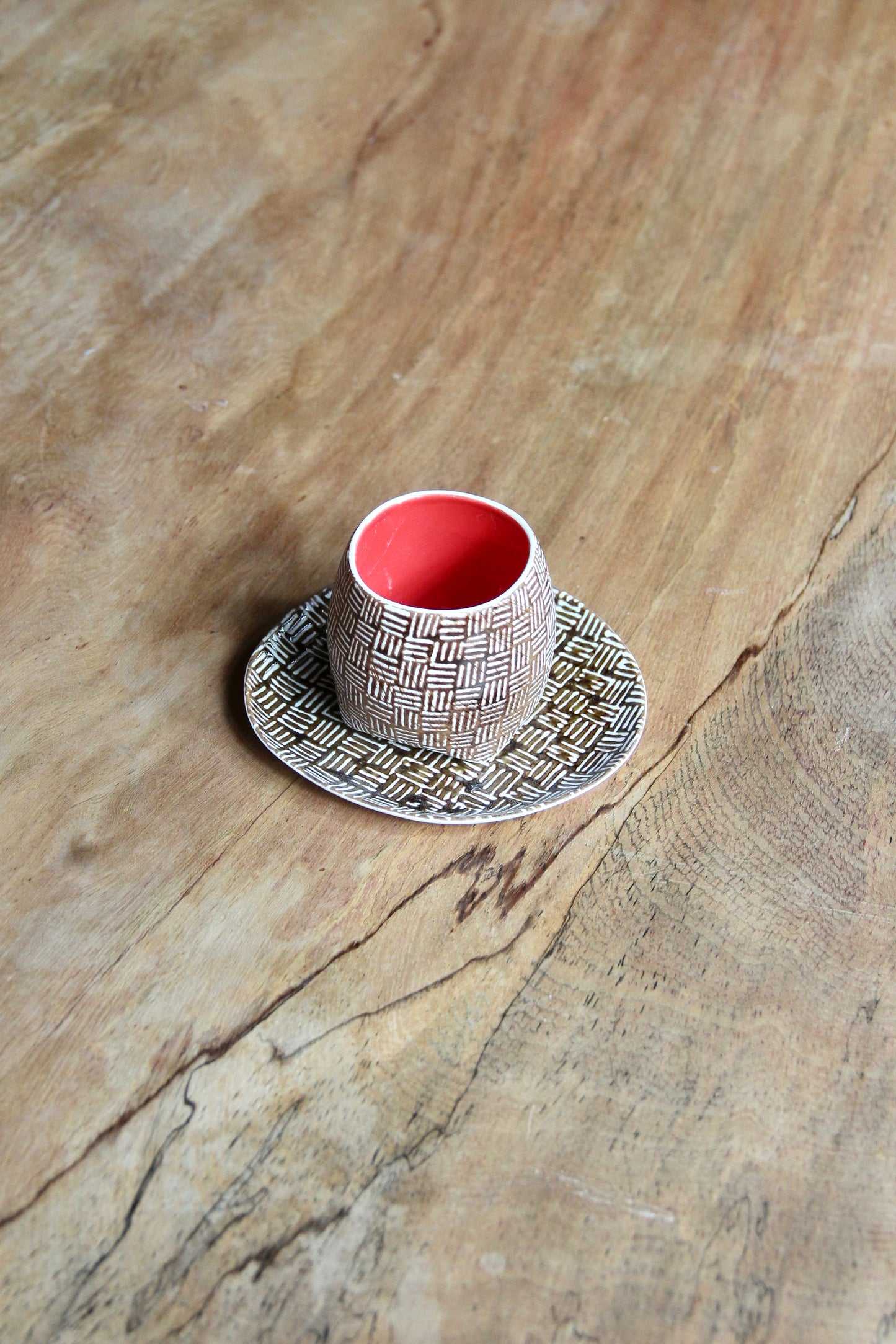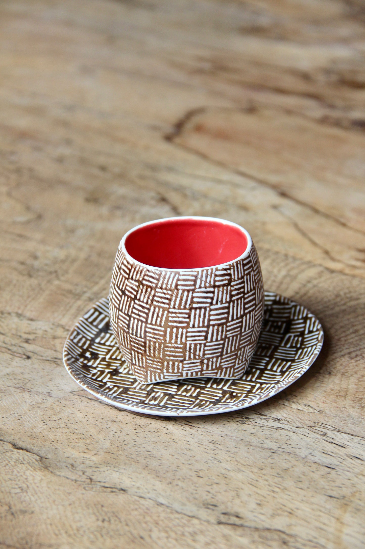 Gedek Espresso Cup & Saucer (Brown & Red)