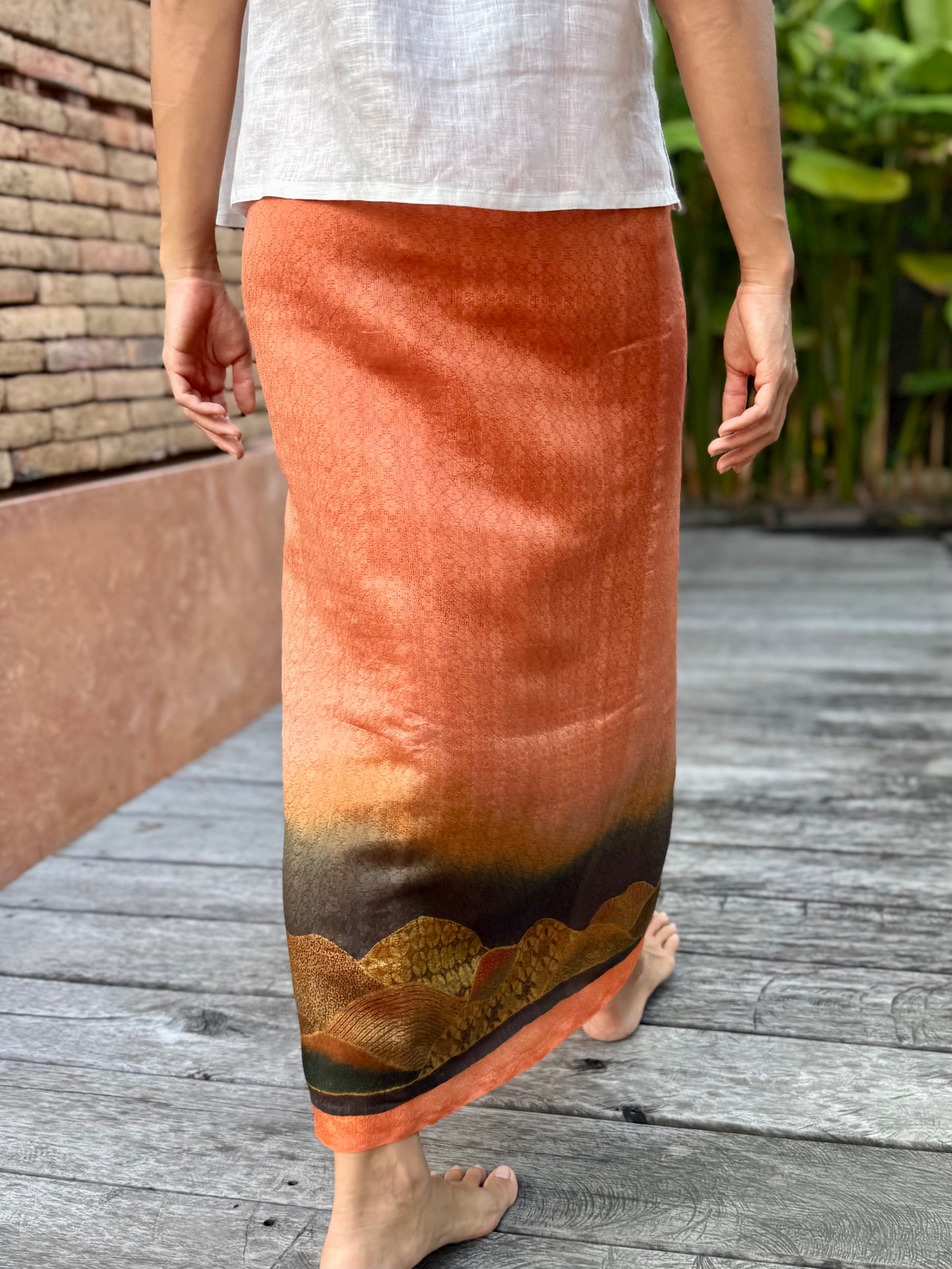 Gunung Silk Sarung Ikat (Earthy Orange)