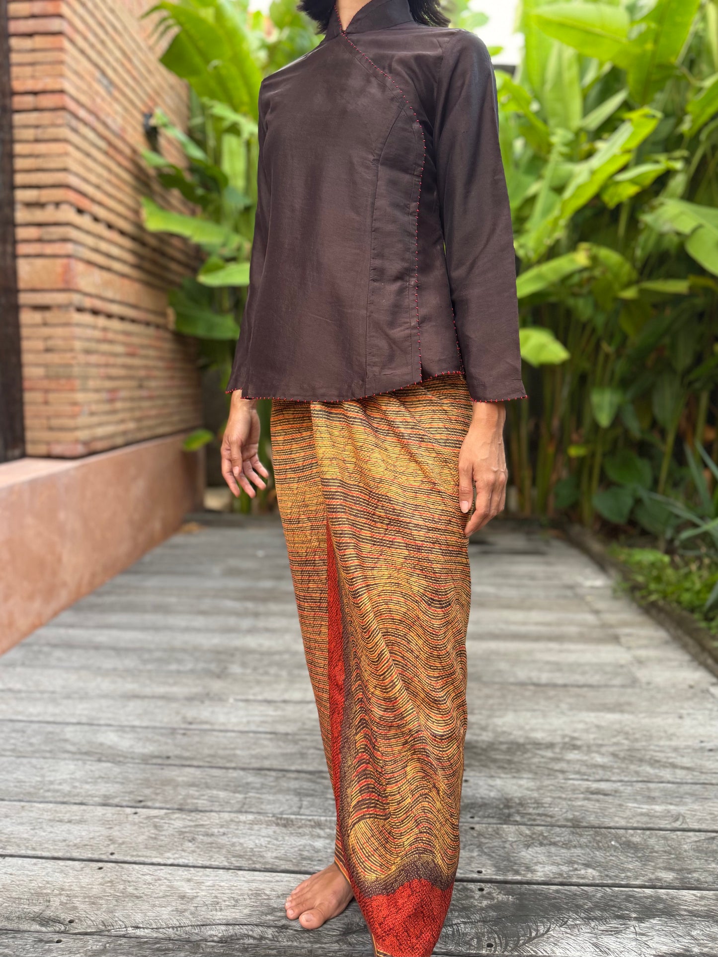 This silk Batik kain is a masterpiece of intricate design, carefully hand-drawn by our skillful artisan in Solo. Each piece is truly unique, with no two ever the same-crafted with care and creativity for something truly Special.