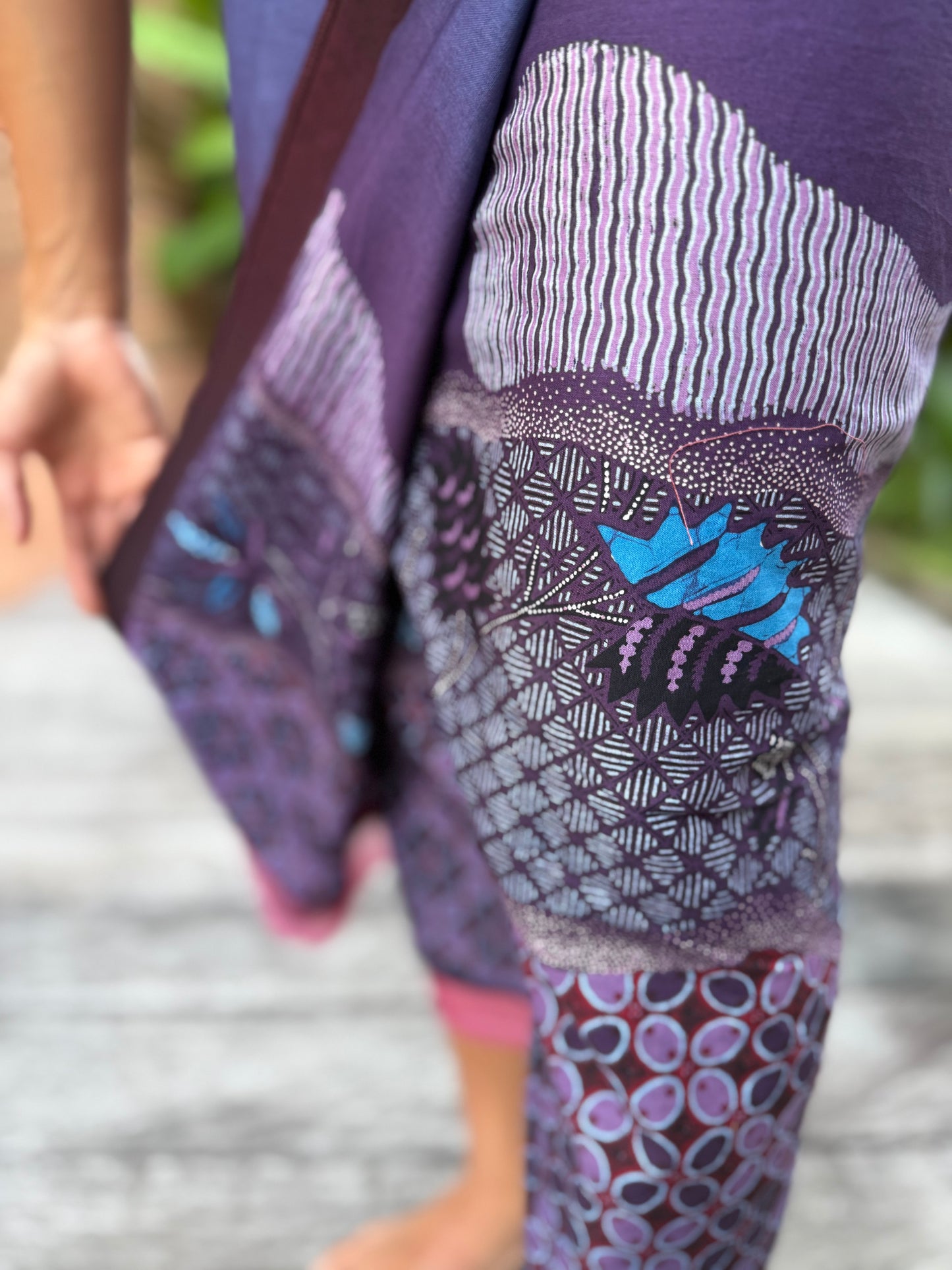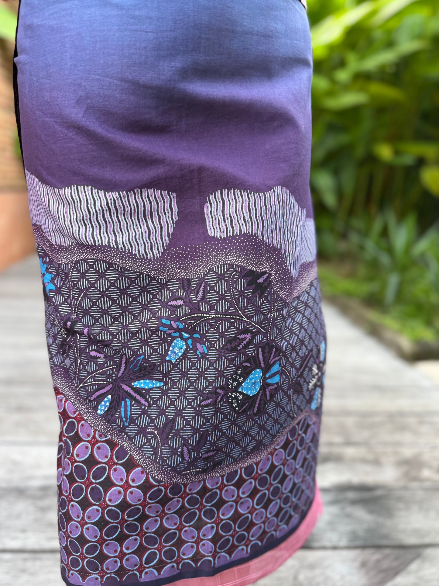 Kawung Batu Karang Cotton Sarung Ikat (Blue, Deep Purple & Pink)