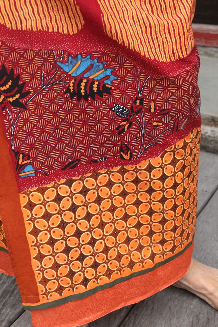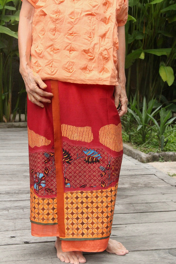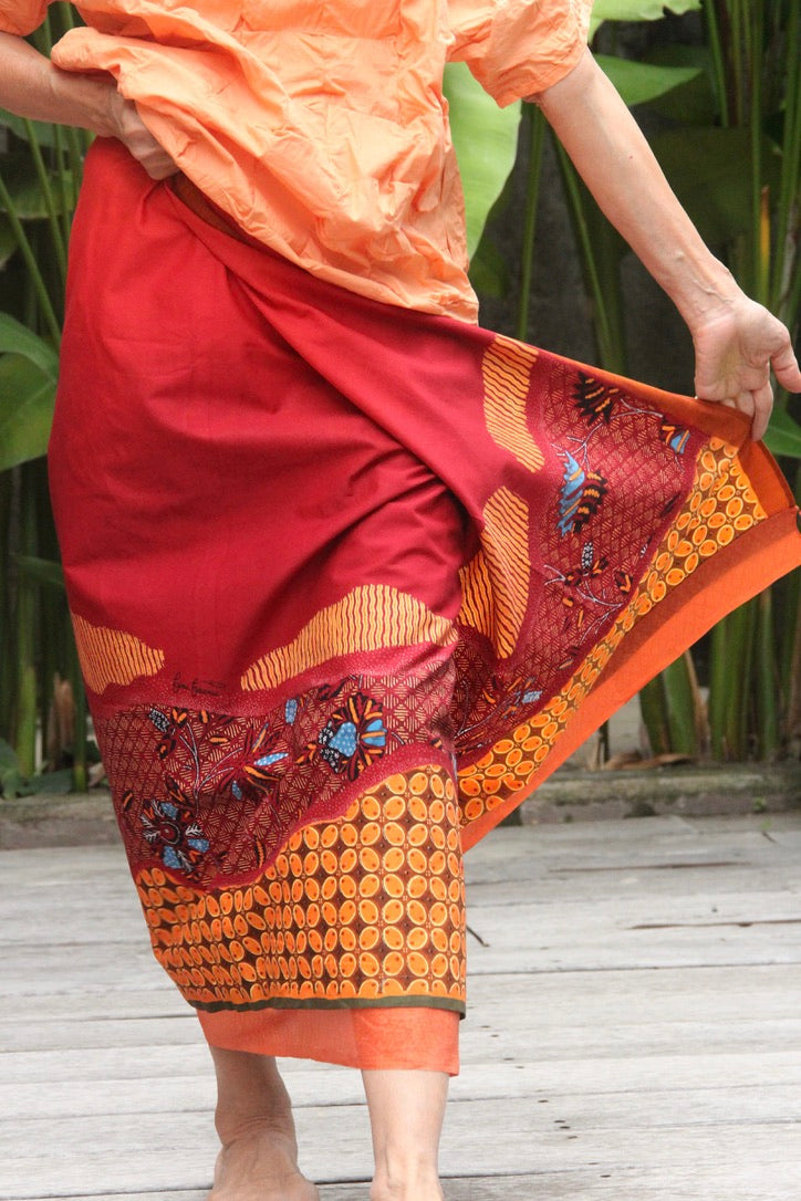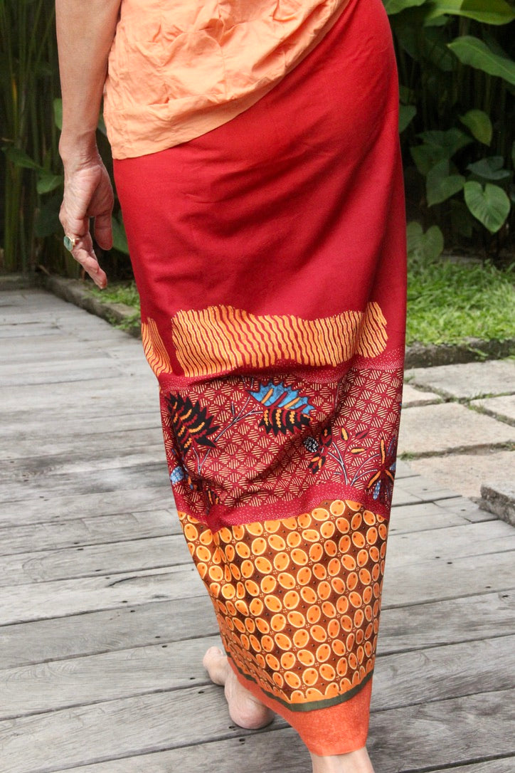 Kawung Batu Karang Cotton Sarung Ikat (Red & Orange)
