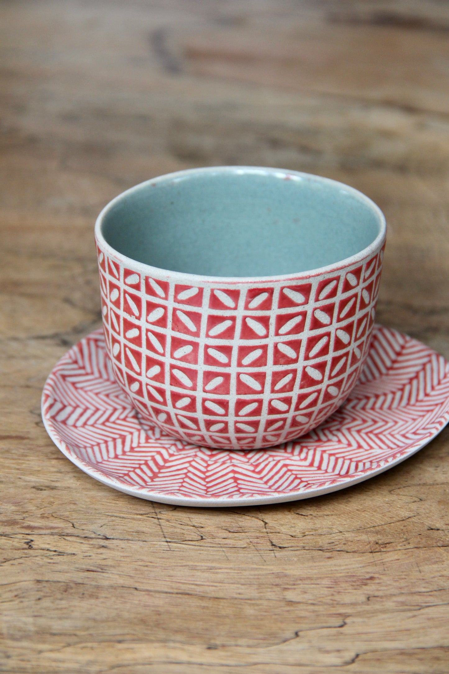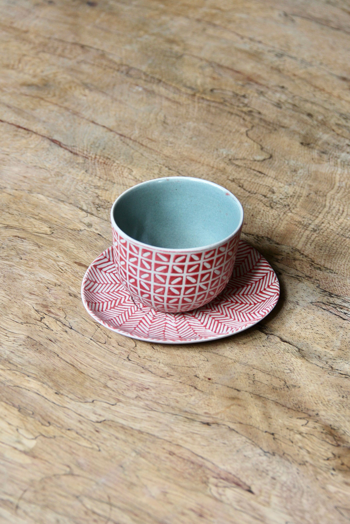 Dimensions: Cup: D9 cm, H6 cm, Coaster: D12.5 cm