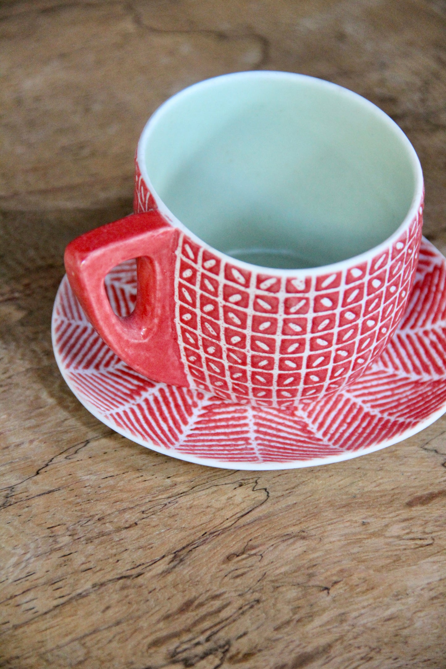 Biru Beeru's ceramics are handmade, unique, never-the-same creations. Pieces from a collection share the same intention but have their own singularities in shape, Batik pattern and colour.
