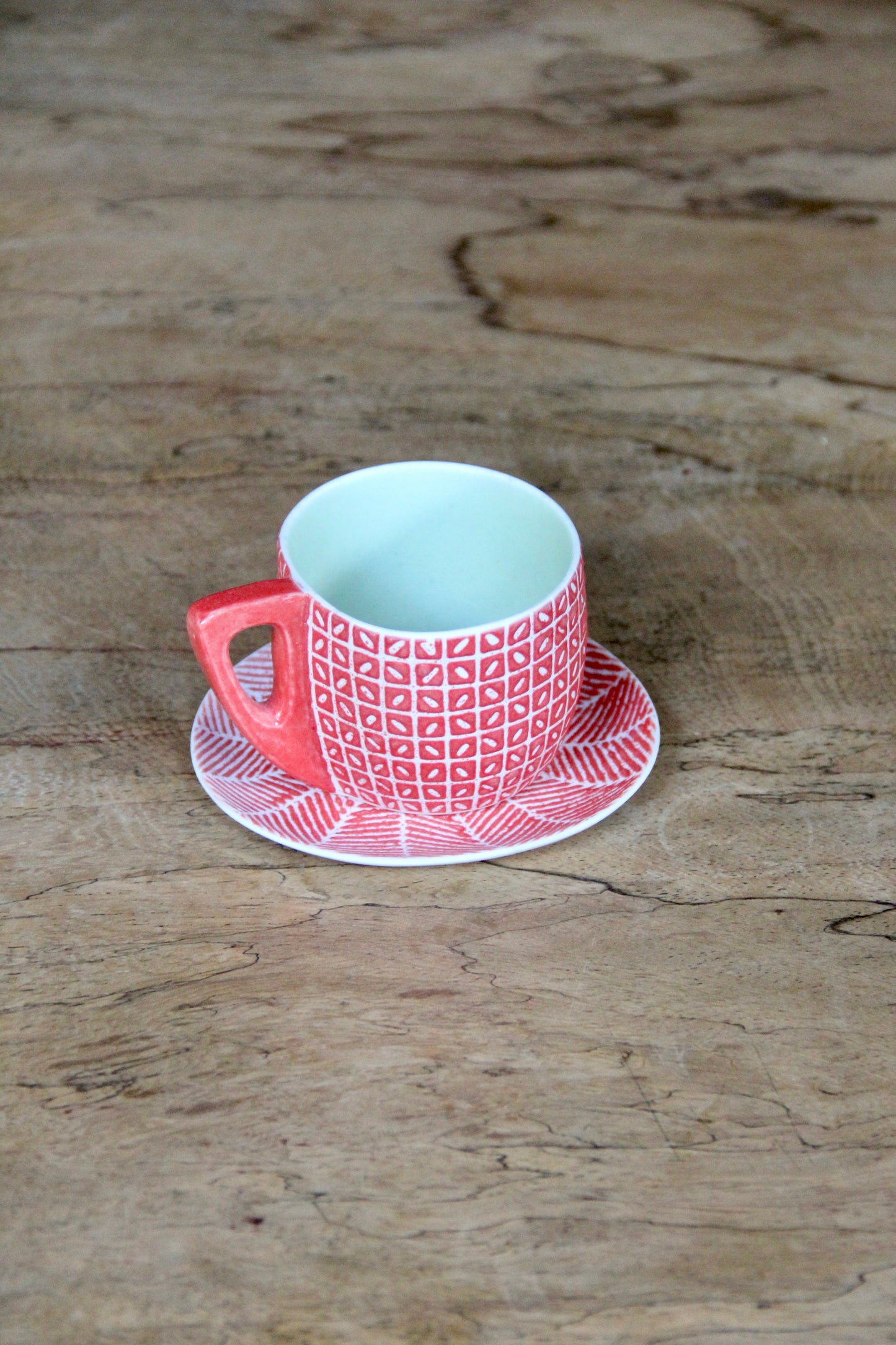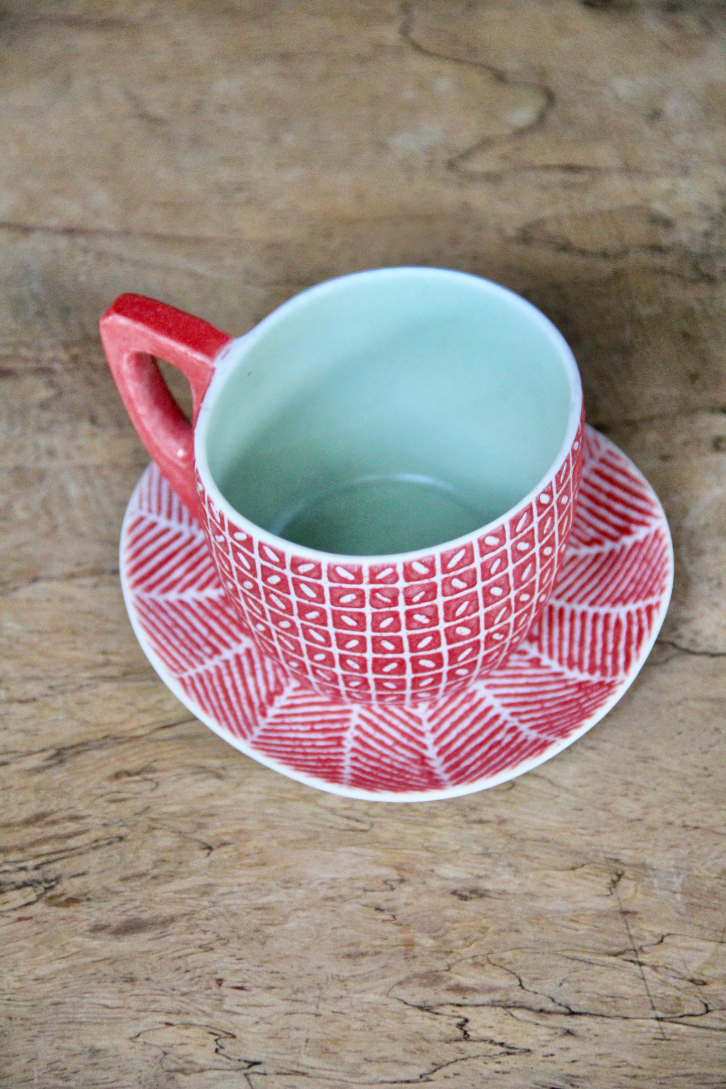 Dimension: Cup: L 7cm x W 6,5cm, H 6,5cm & Saucer: D 11cm