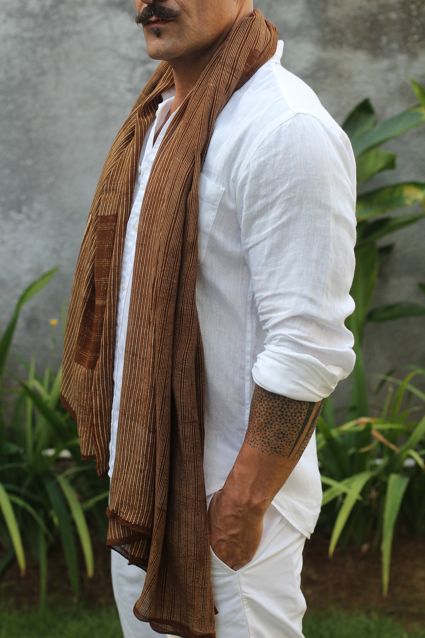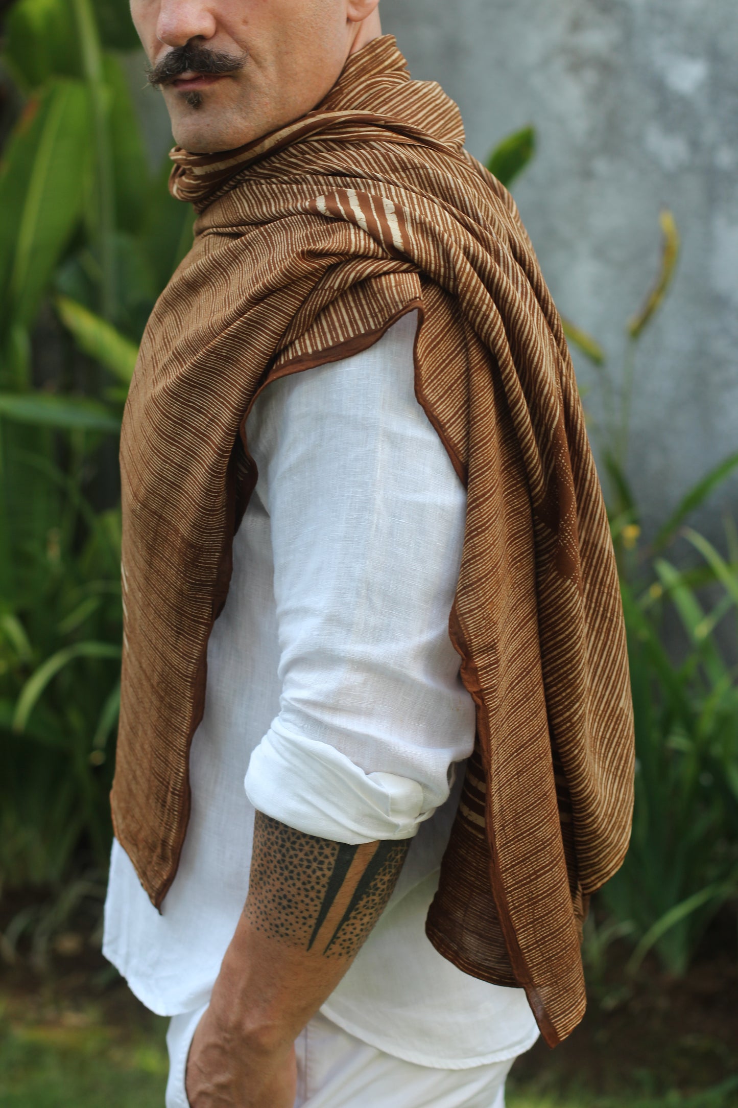 Thin cotton shawl for an airy and breathier feel. Unisex.