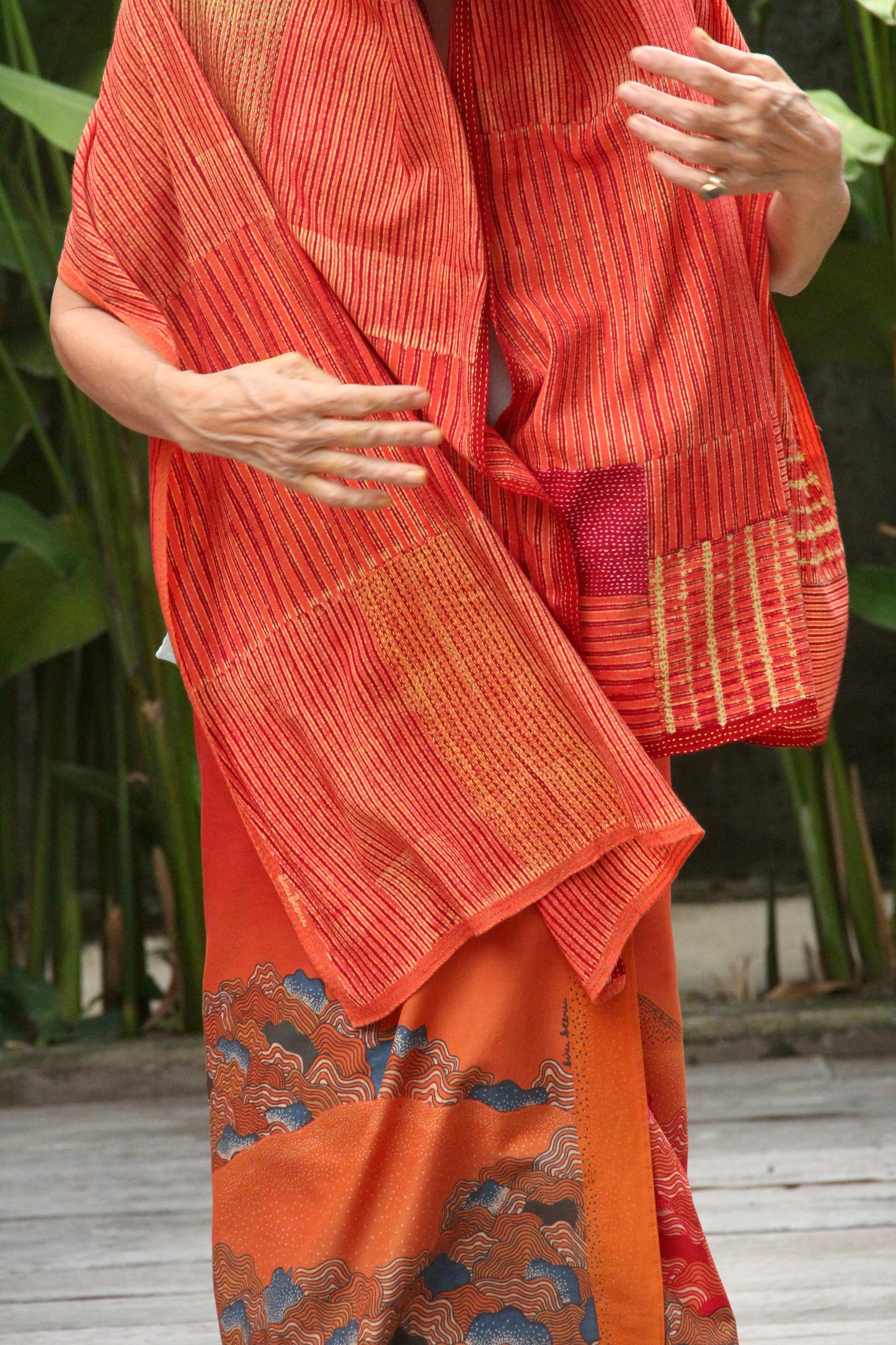Hand wash gently in cold water with mild soap. After rinsing, let the garment breathe in the shade—keep it away from harsh sunlight, which may fade its natural beauty. In the beginning, wash separately, as the colors may softly run, like a memory letting go.