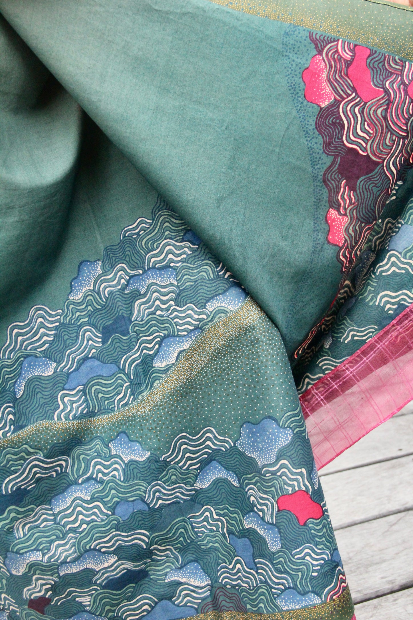 Hand wash gently in cold water with mild soap. After rinsing, let the garment breathe in the shade—keep it away from harsh sunlight, which may fade its natural beauty. In the beginning, wash separately, as the colors may softly run, like a memory letting go.