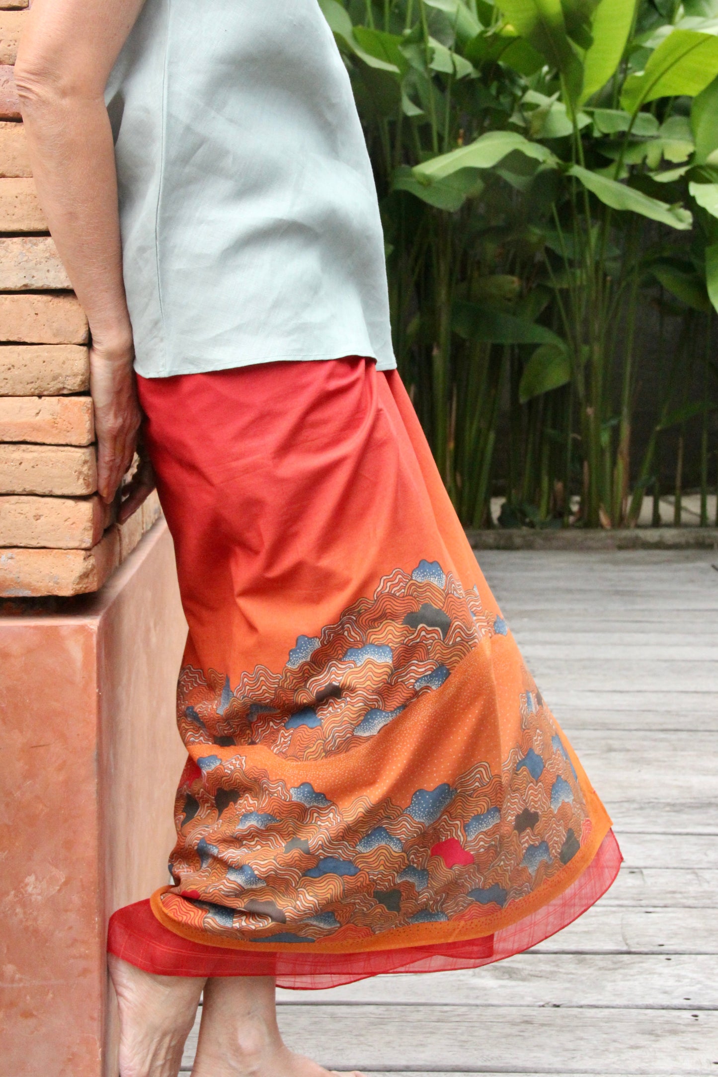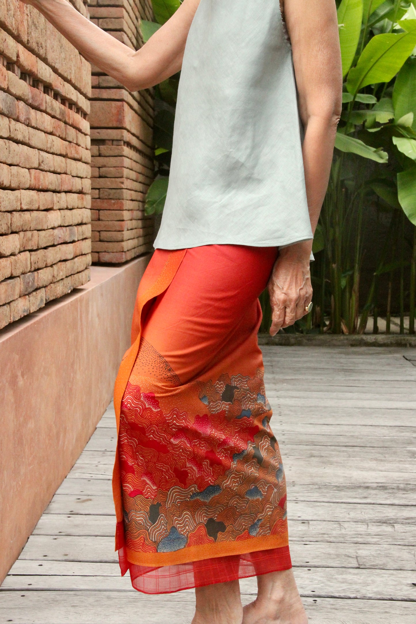 Sarung rok lilit katun dengan tali.