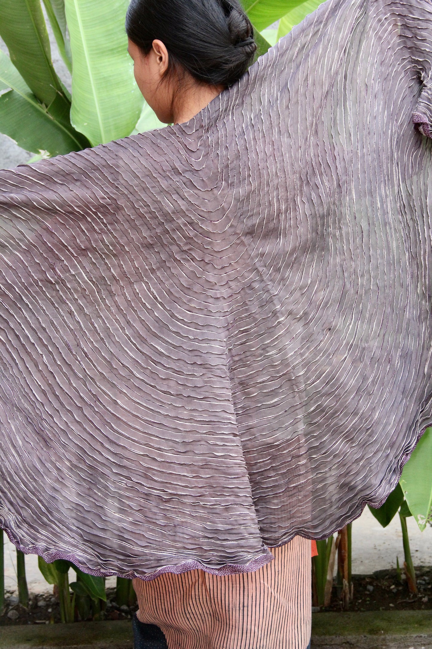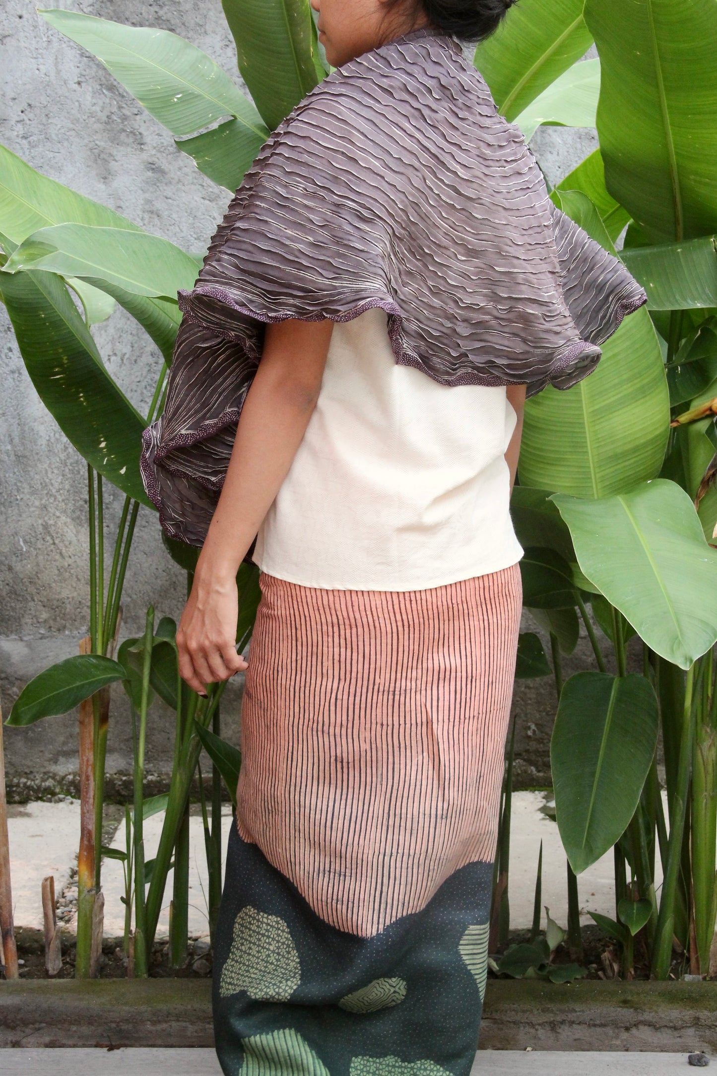 This outer shawl is a masterpiece of craftsmanship, meticulously hand-stitched using the intricate fold-stitch technique. Its edges are adorned with the iconic "cecek" Batik motif, adding a touch of tradition and artistry.