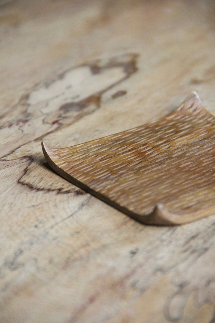 Biru Beeru’s wooden tableware is coated in natural shellac, a finish that may soften with time and use. To bring back its gentle shine, simply rub the surface with a soft cloth and a touch of olive oil, coconut oil, or candlenut oil. Rinse with care and dry right away. Like all things shaped by hand, it does not like to be soaked—keep it dry, and it will age with grace.