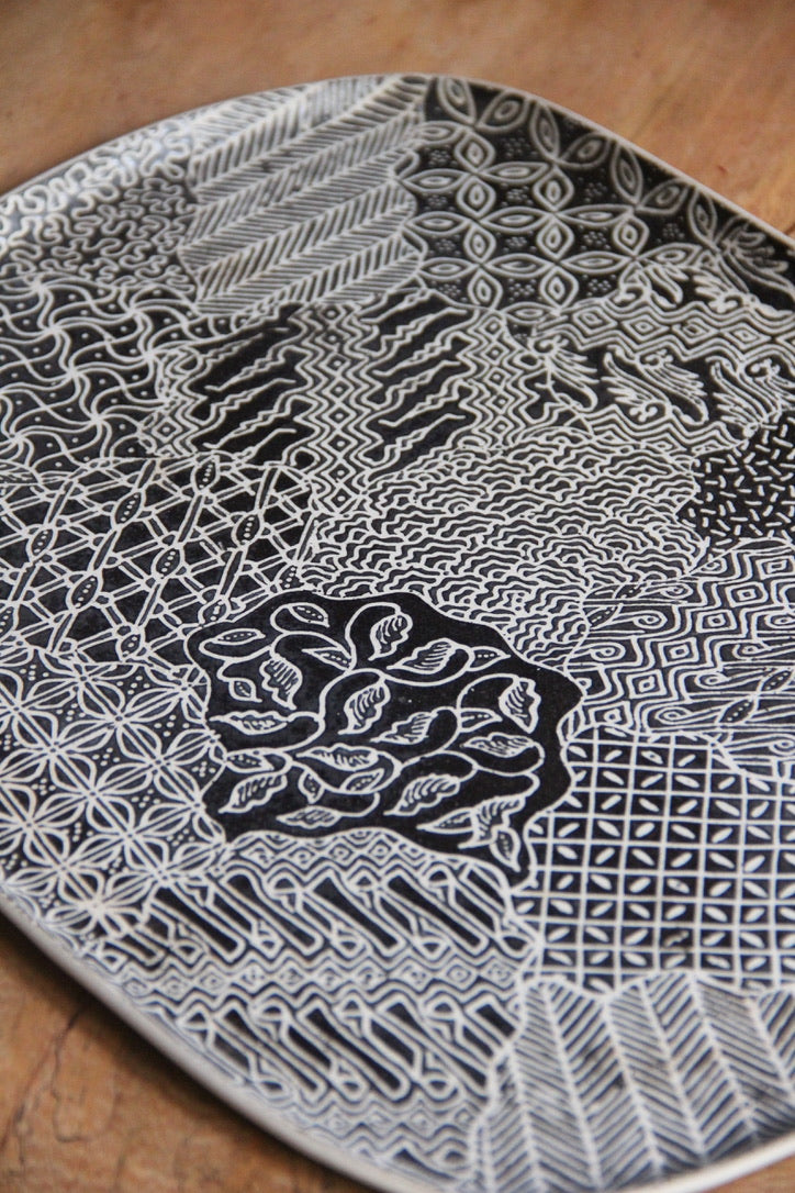 Biru Beeru's ceramics are handmade, unique, never-the-same creations. Pieces from a collection share the same intention but have their own singularities in shape, Batik pattern and colour.