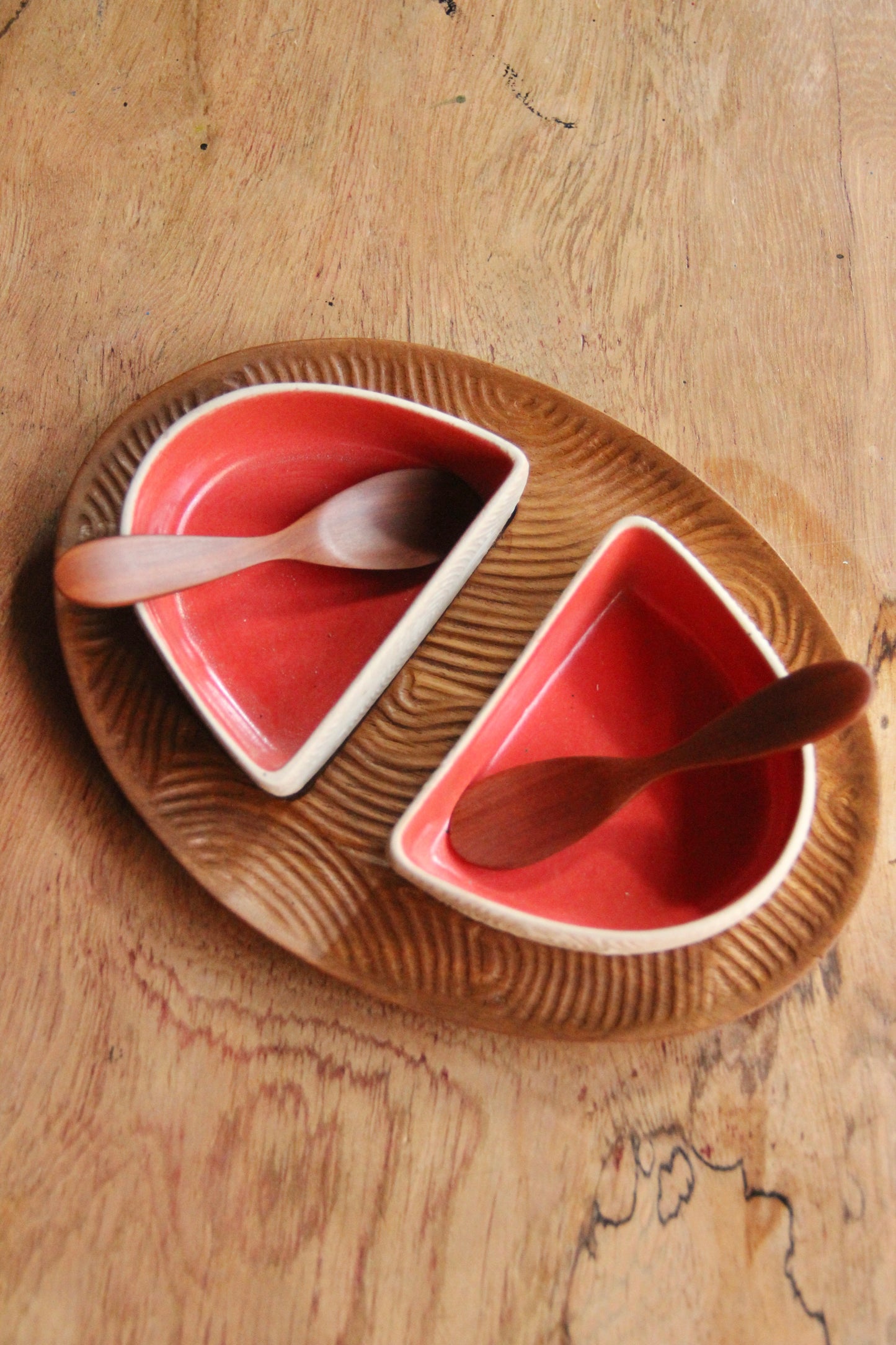 Materials: Porcelain bowls, Sonokeling wood spoons and Teak wood tray