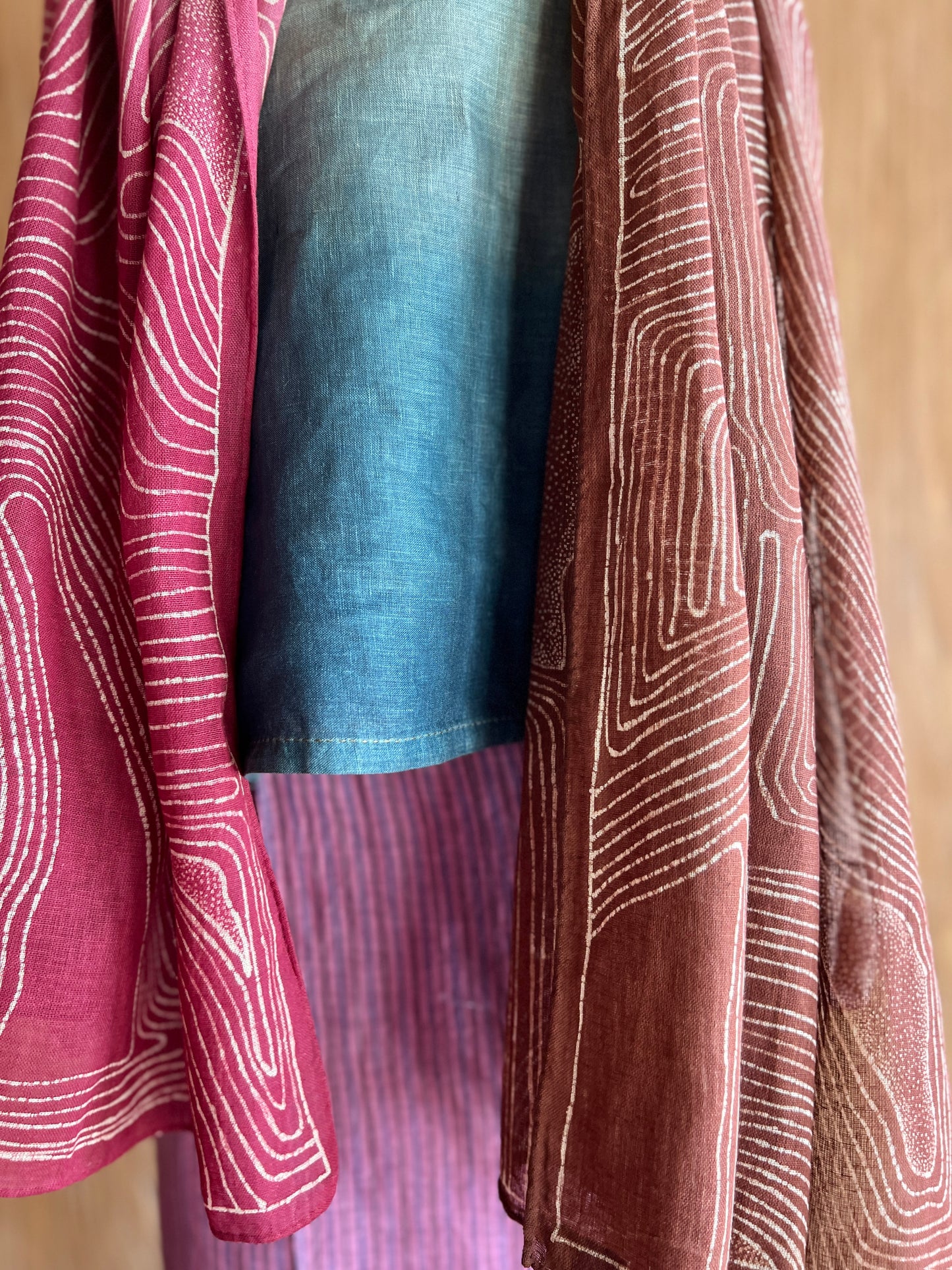 Hand wash gently in cold water with mild soap. After rinsing, let the garment breathe in the shade—keep it away from harsh sunlight, which may fade its natural beauty. In the beginning, wash separately, as the colors may softly run, like a memory letting go.